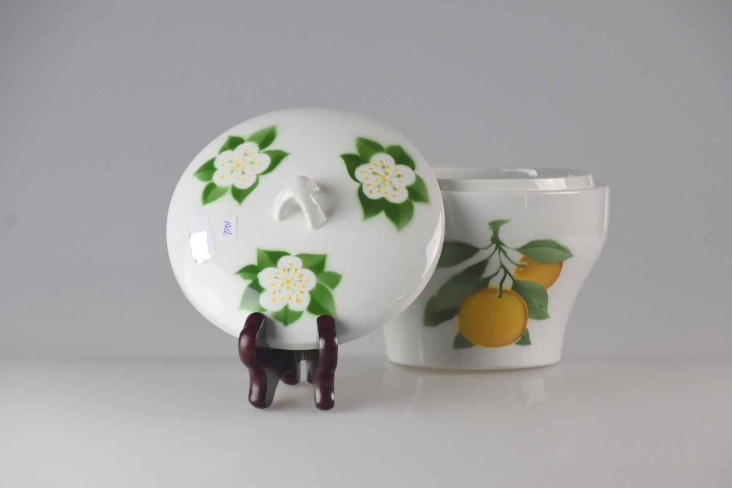 Marmeladekrukke med abrikoser år 1912 fra Aluminia