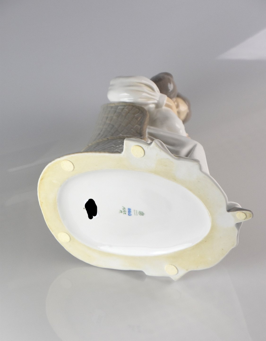 Figur i porcelæn med motiv af mor og barn i kurvestol. Nr. 1552