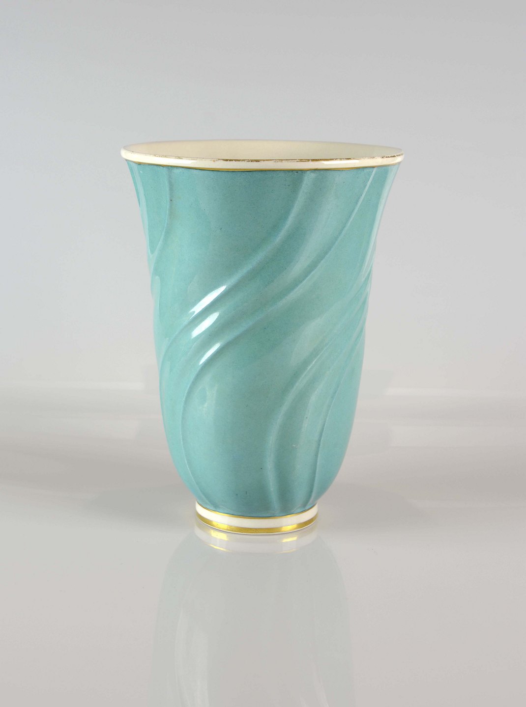 Grøn vase med snoninger og forgyldte kanter fra Lyngby Porcelæn