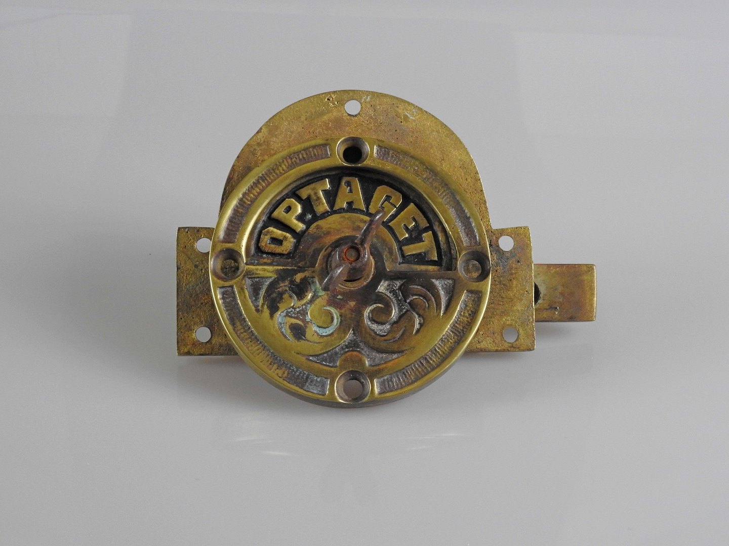 Der mangler forskruning mellem de 2 beslag, fløjmøtrik på fri/optaget er ikke original, Forskruning kan nemt laves, men afhænger af tykkelse på dør.