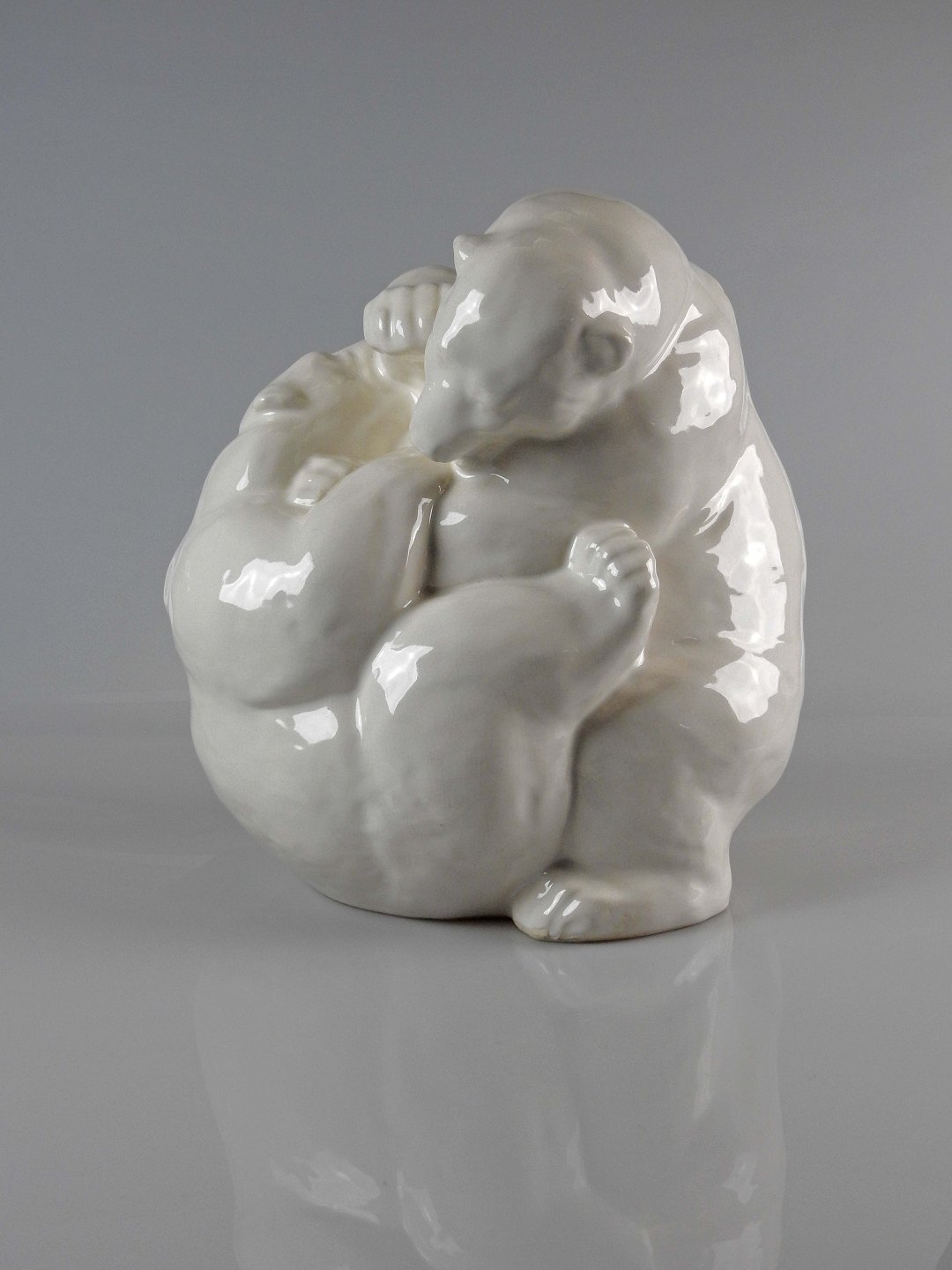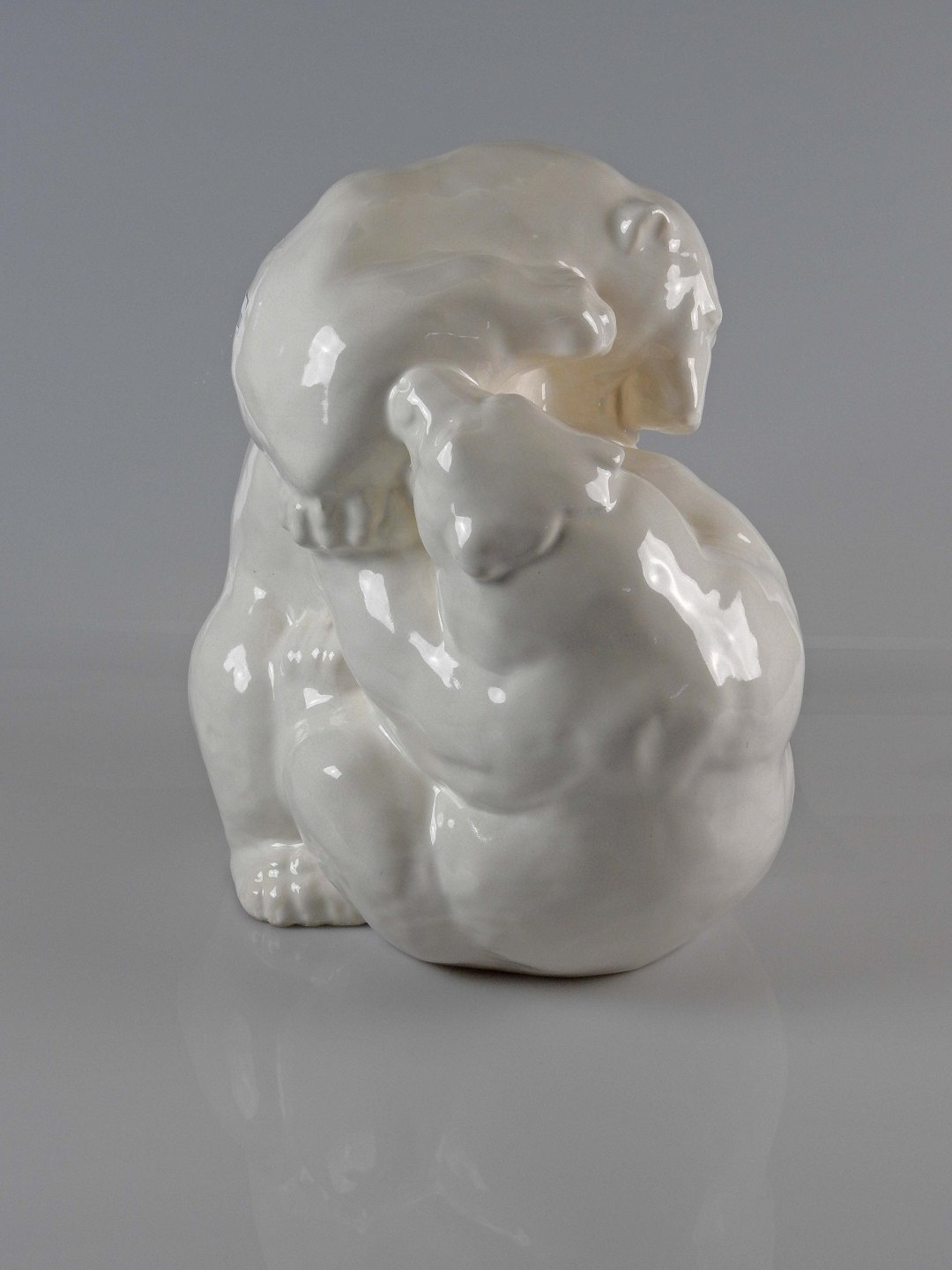 Figur af brydende isbjørne i glaseret keramik fra Kähler