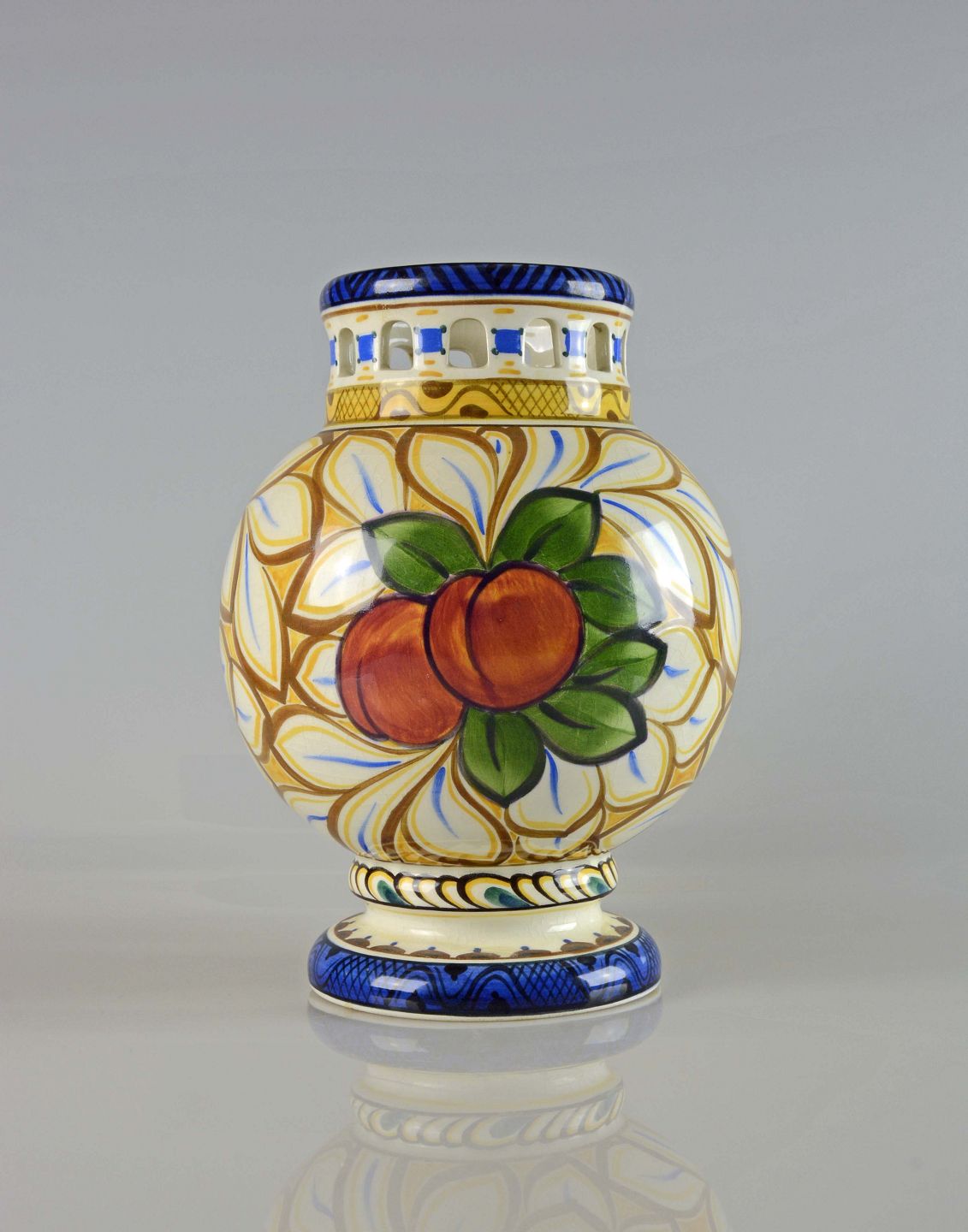 Vase med gennembrudt kant og motiv af ferskner og blade