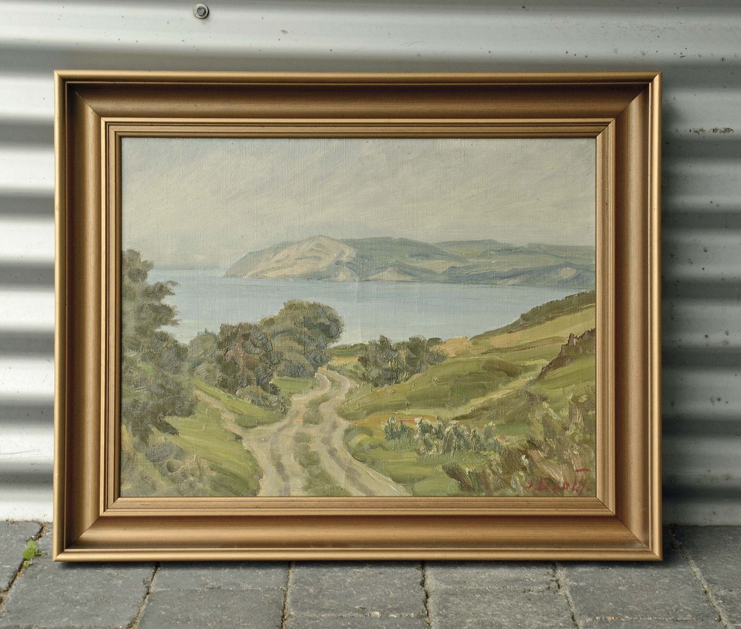 Leon Møller maleri Huse ved mark