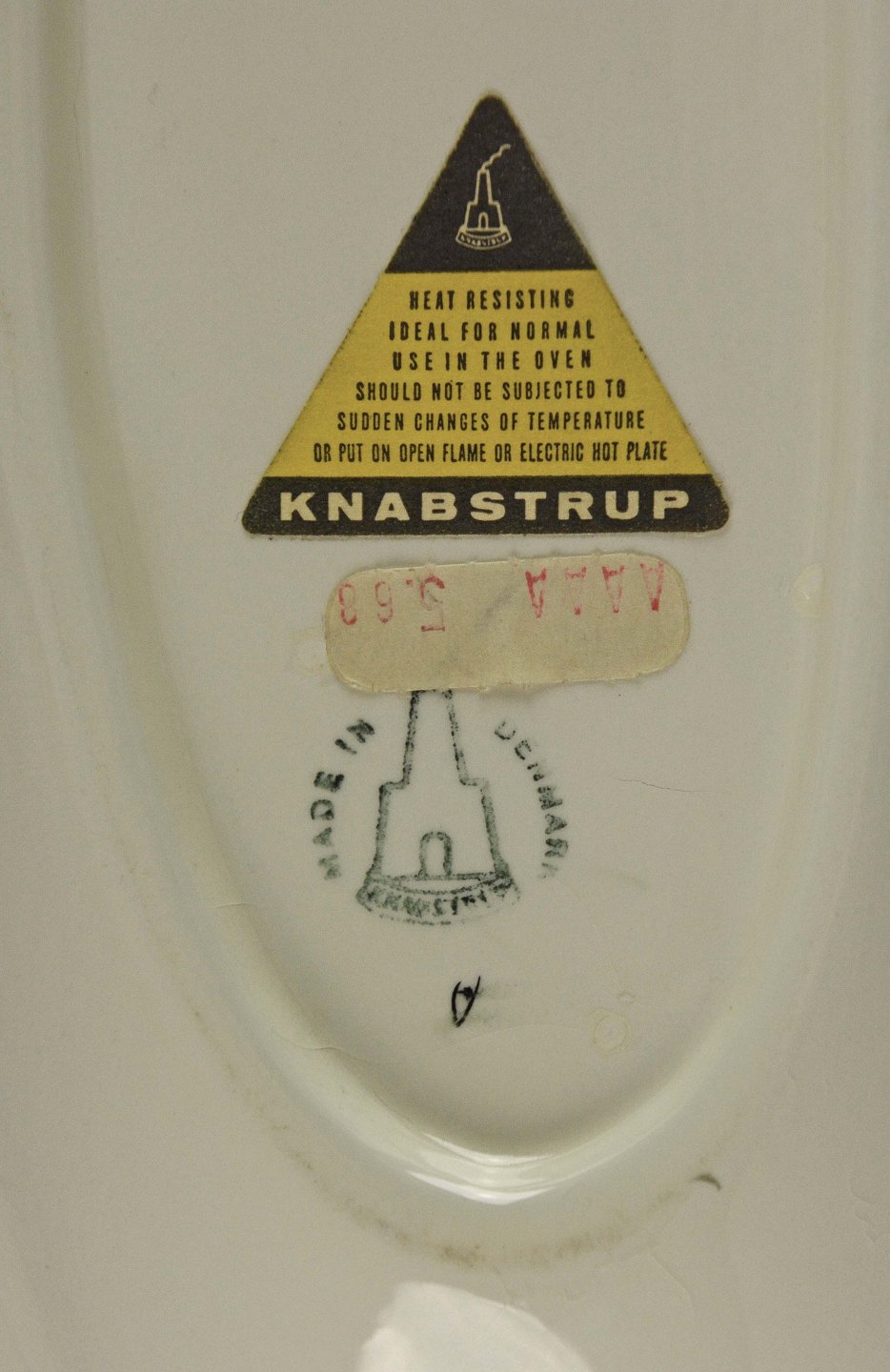 Fad med fire tallerkner i varmeresistent porcelæn fra Knabstrup nr. 504/110