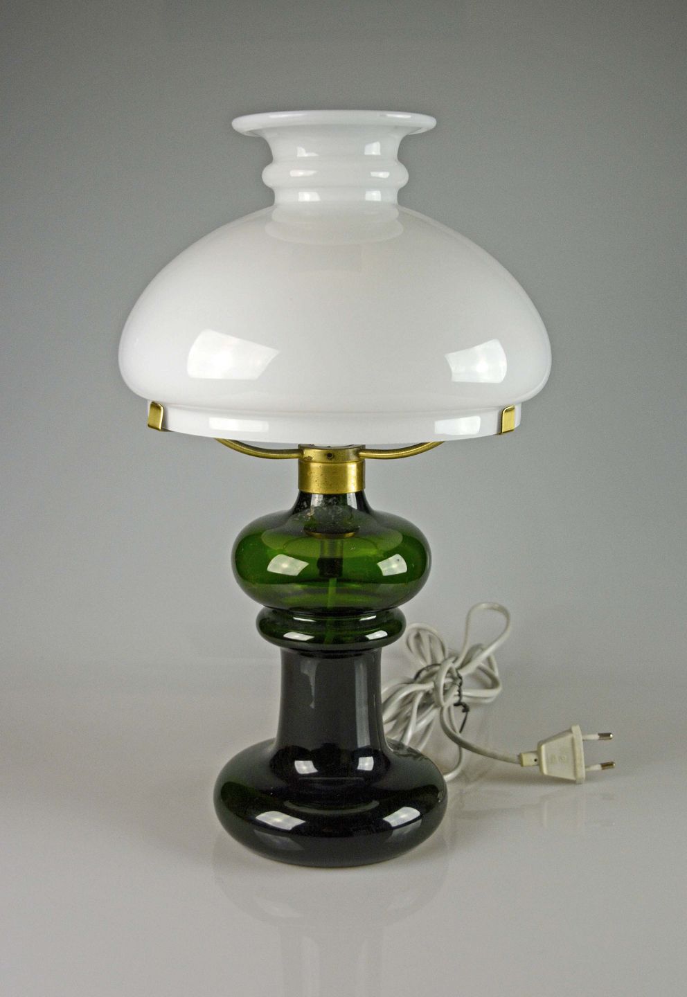 Patroliumslampe look, hvid opal glasskærm.