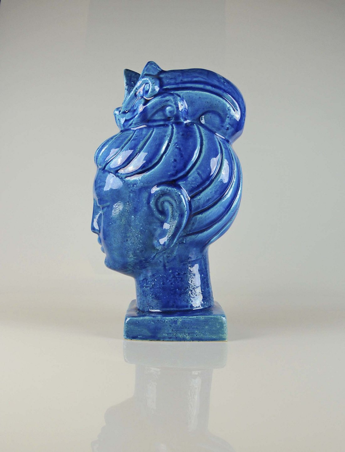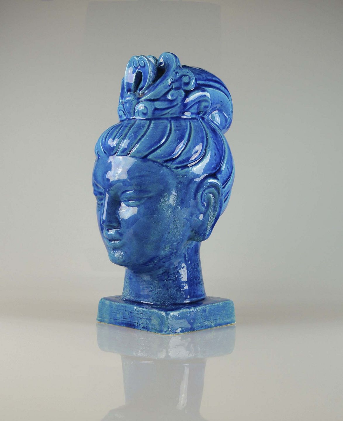 Rimini blå serien, Rimini blue, quan yin buste, blå buste, keramik buste, keramik, blå keramik, keramik figur, kvindefigur, kvindebuste