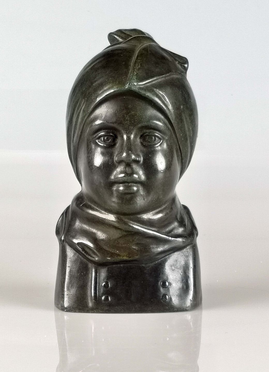 Buste, metalfigur, diskometal, skulptur, figur, Just Andersen figur. diskometal figur.