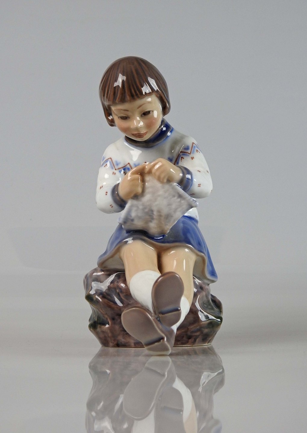 Figur af strikkende pige af Dahl Jensen nr. 1197