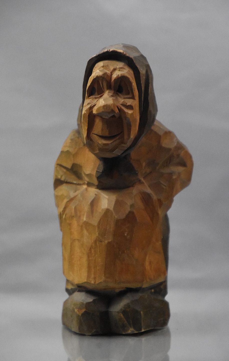 Håndsnittet Gammel dame, kvindelig træfigur.