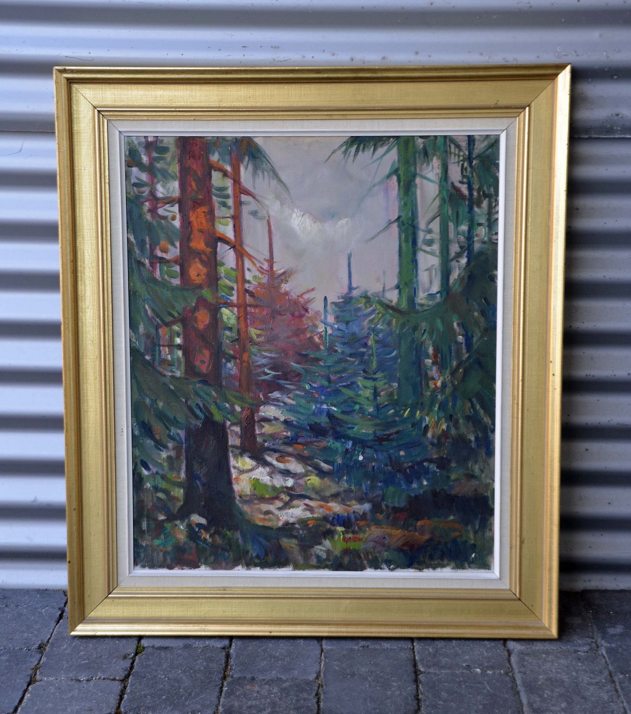 Naturmaleri med motiv af grantræer af Olaf Kramer