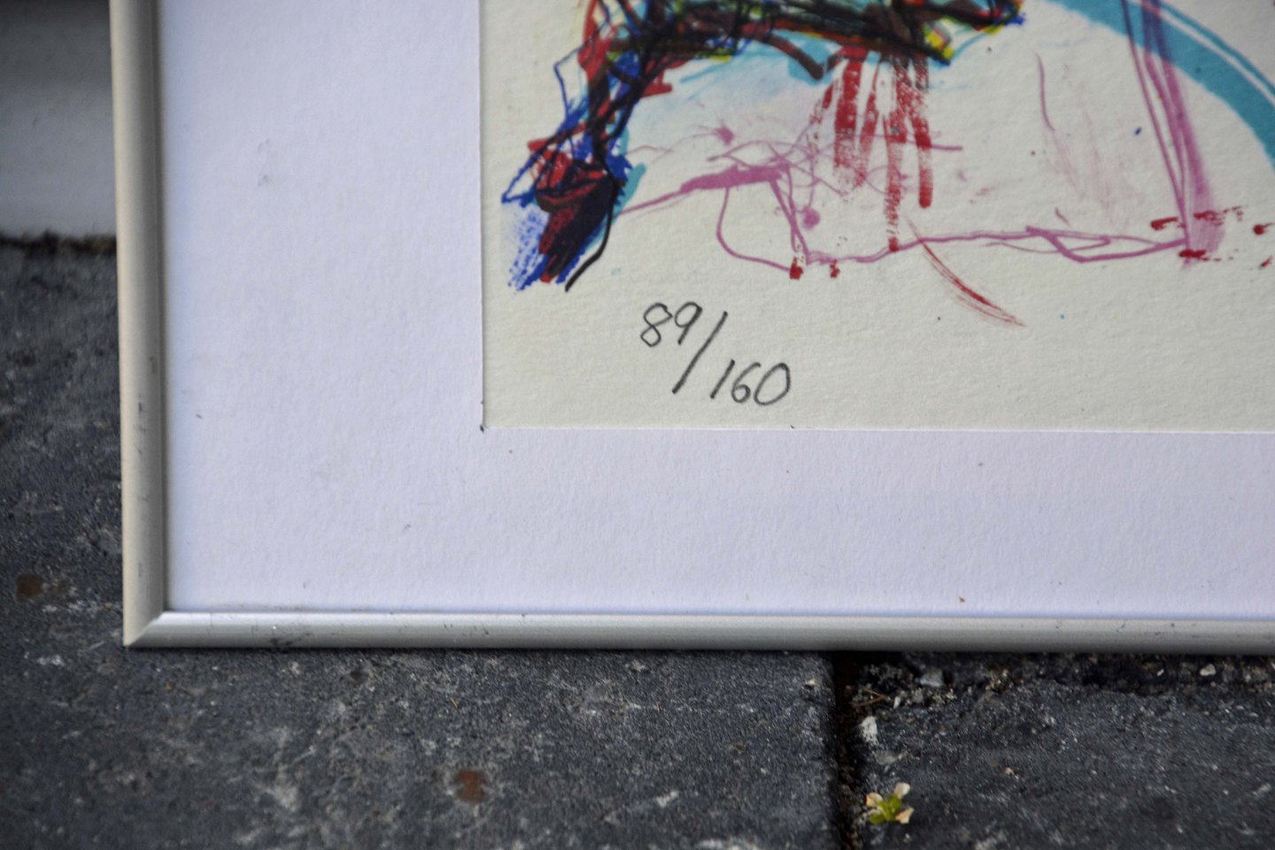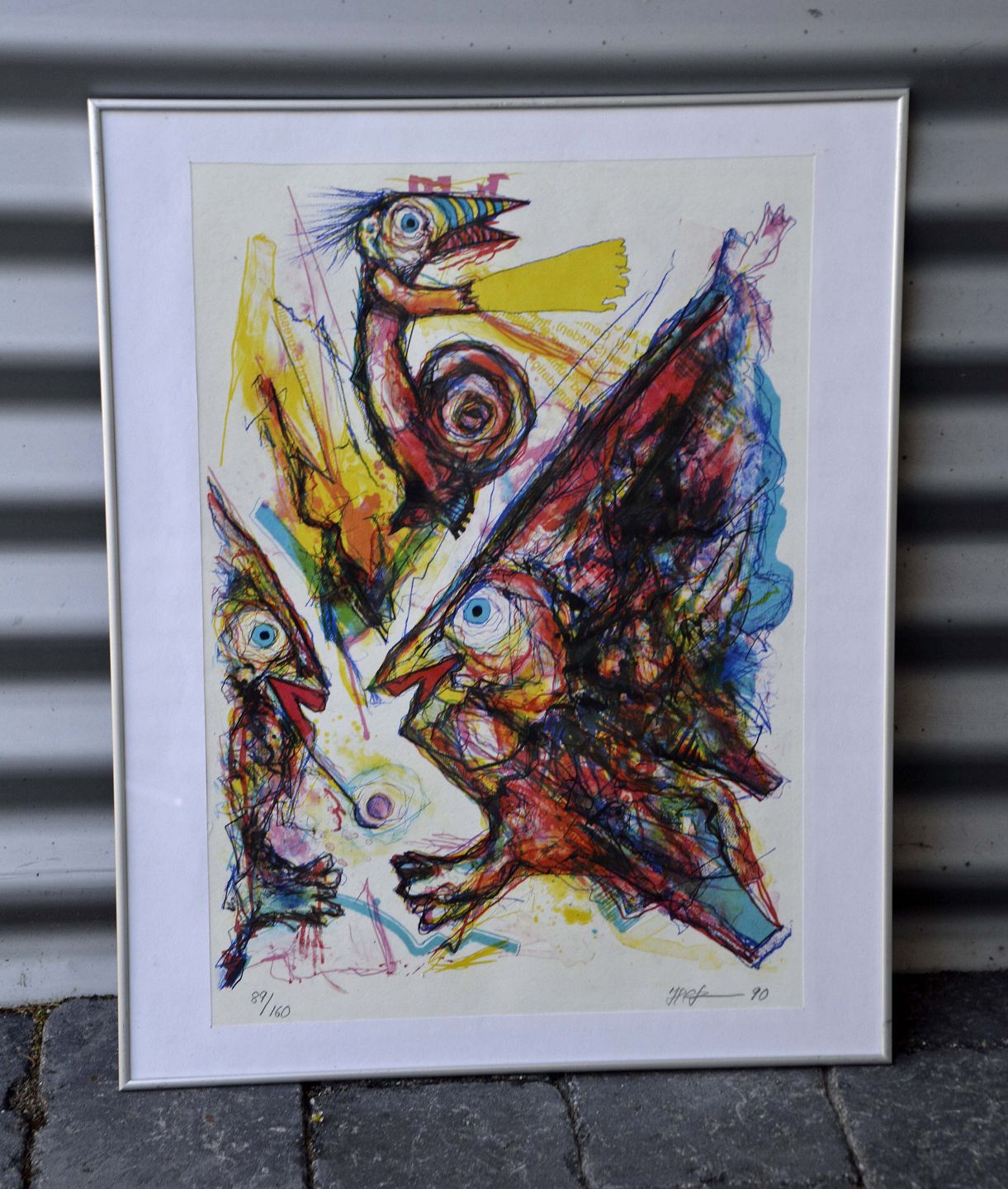 Litografi med abstrakt motiv af fugle af Hans Chr. Thomsen