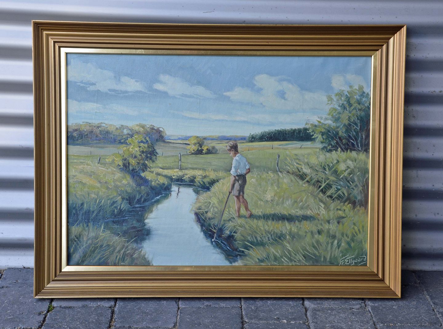 Landskabsmaleri med motiv af dreng ved å af Frederik Ellgaard