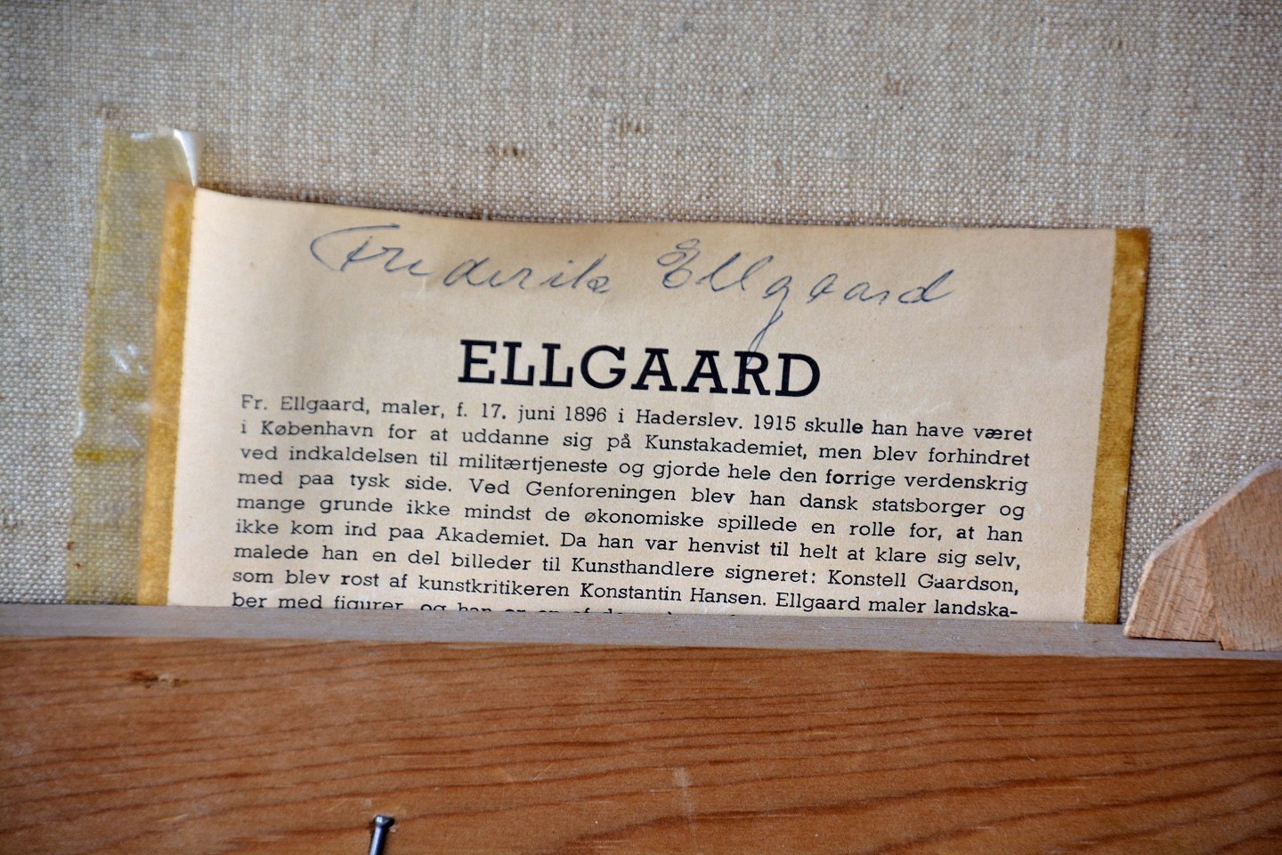 Olie på lærred. Signeret Frederik Ellgaard, født 1896