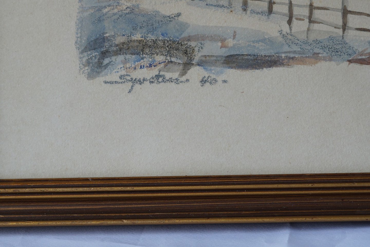 Herman Axelsen akvarel Stråtægt gård 32,5 cm