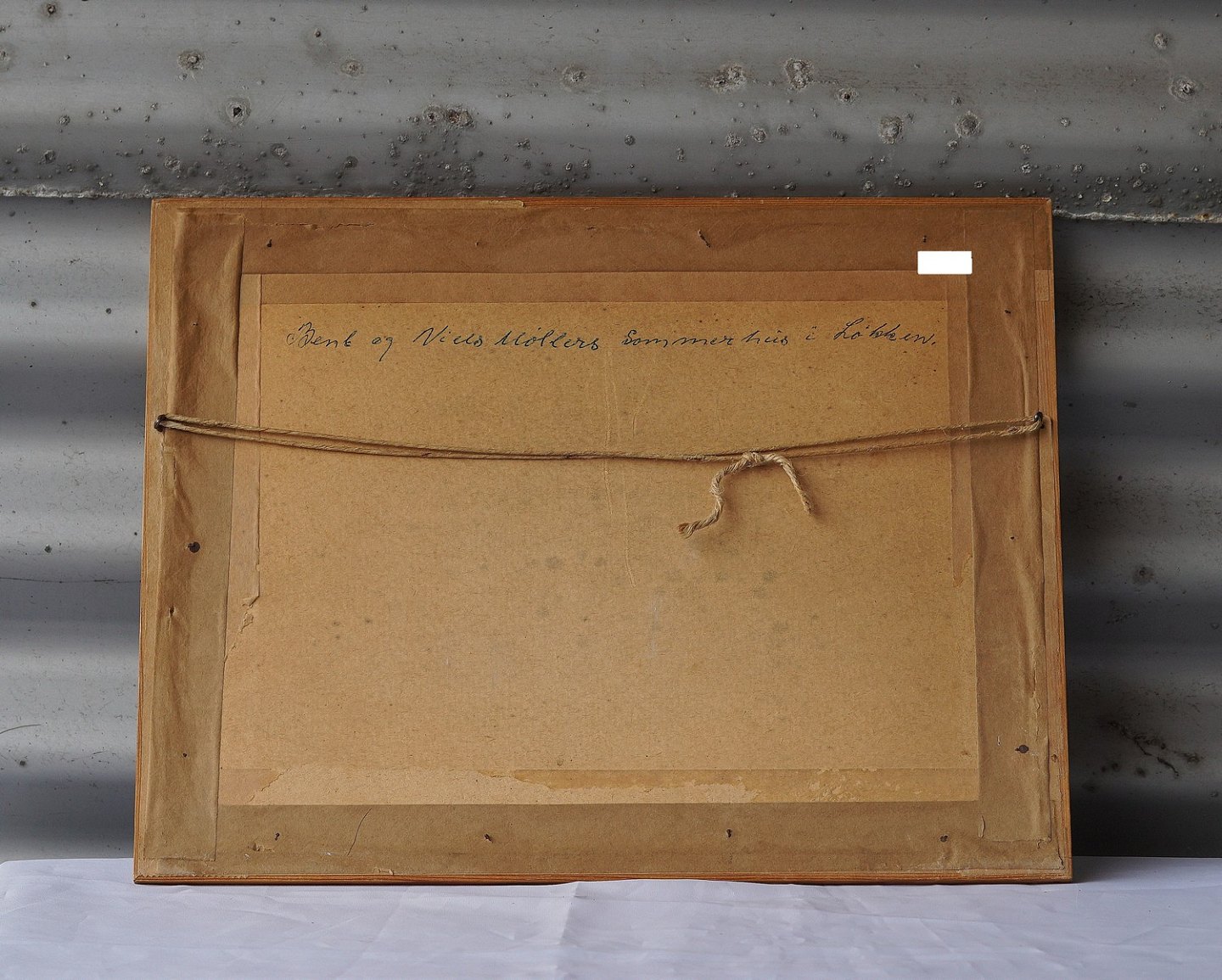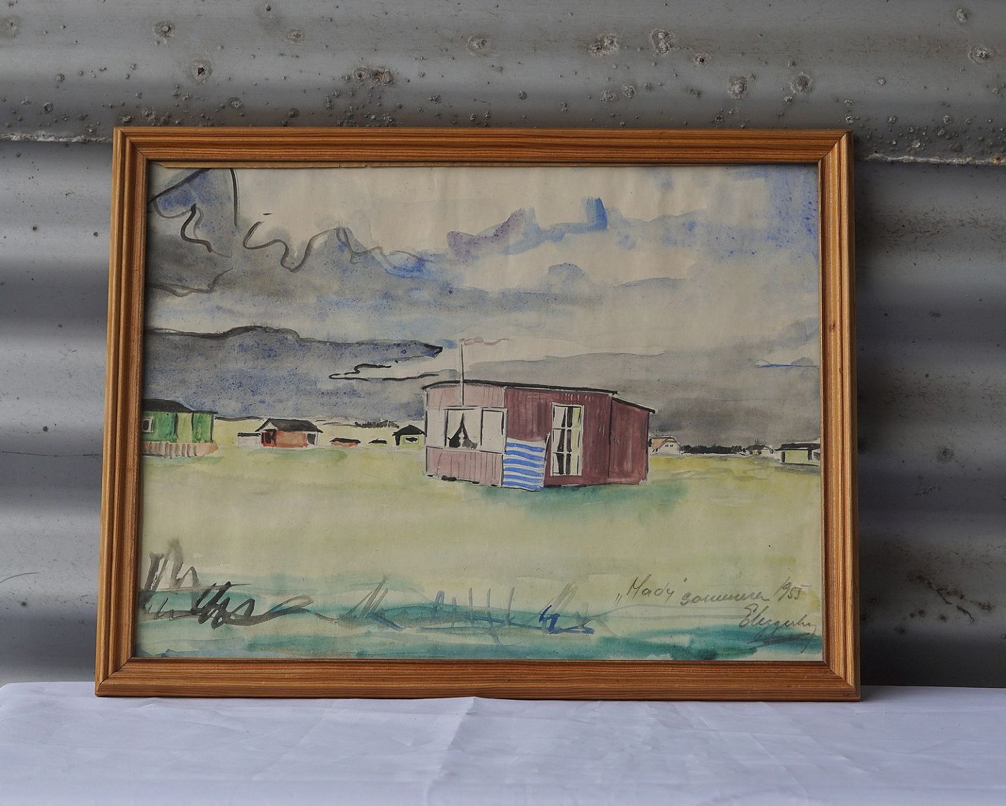 Akvarel af sommerhus i Løkken. "Mady" sommeren 1955 Bente og Niels Møllers sommerhus i Løkken