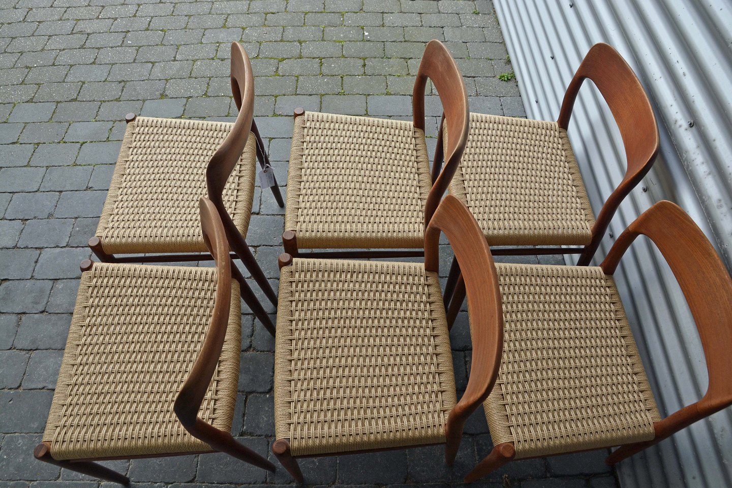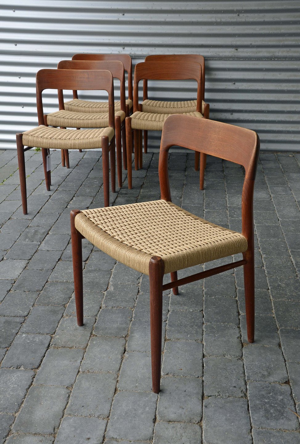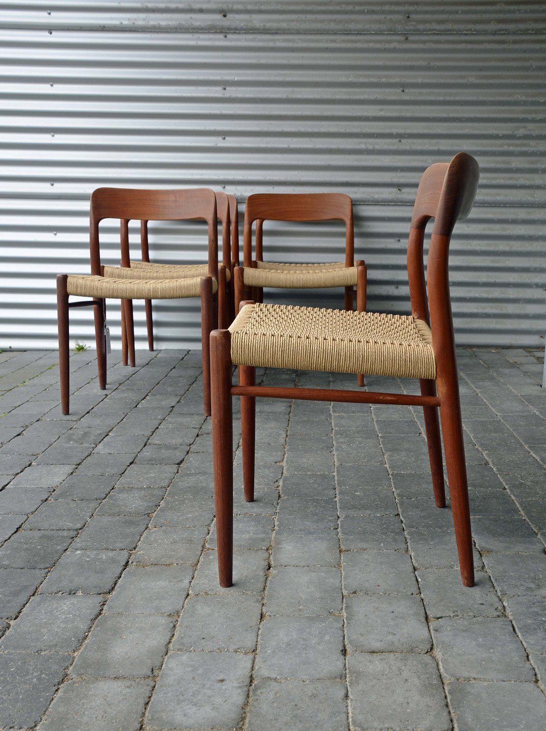 Spisebordsstole, model 75 i teaktræ med ny flettet sæder