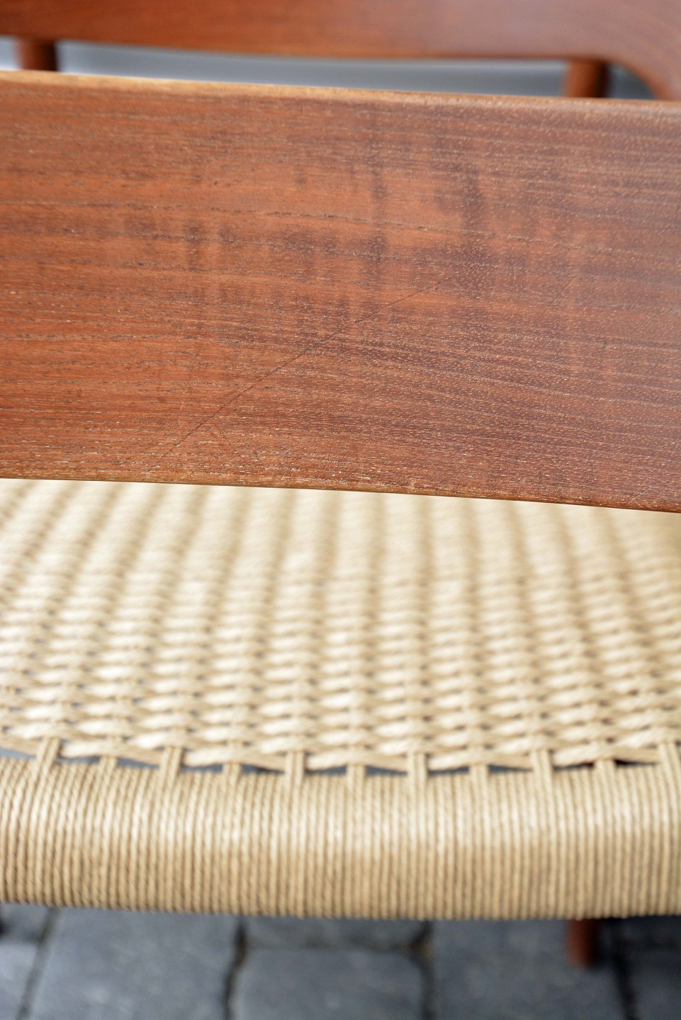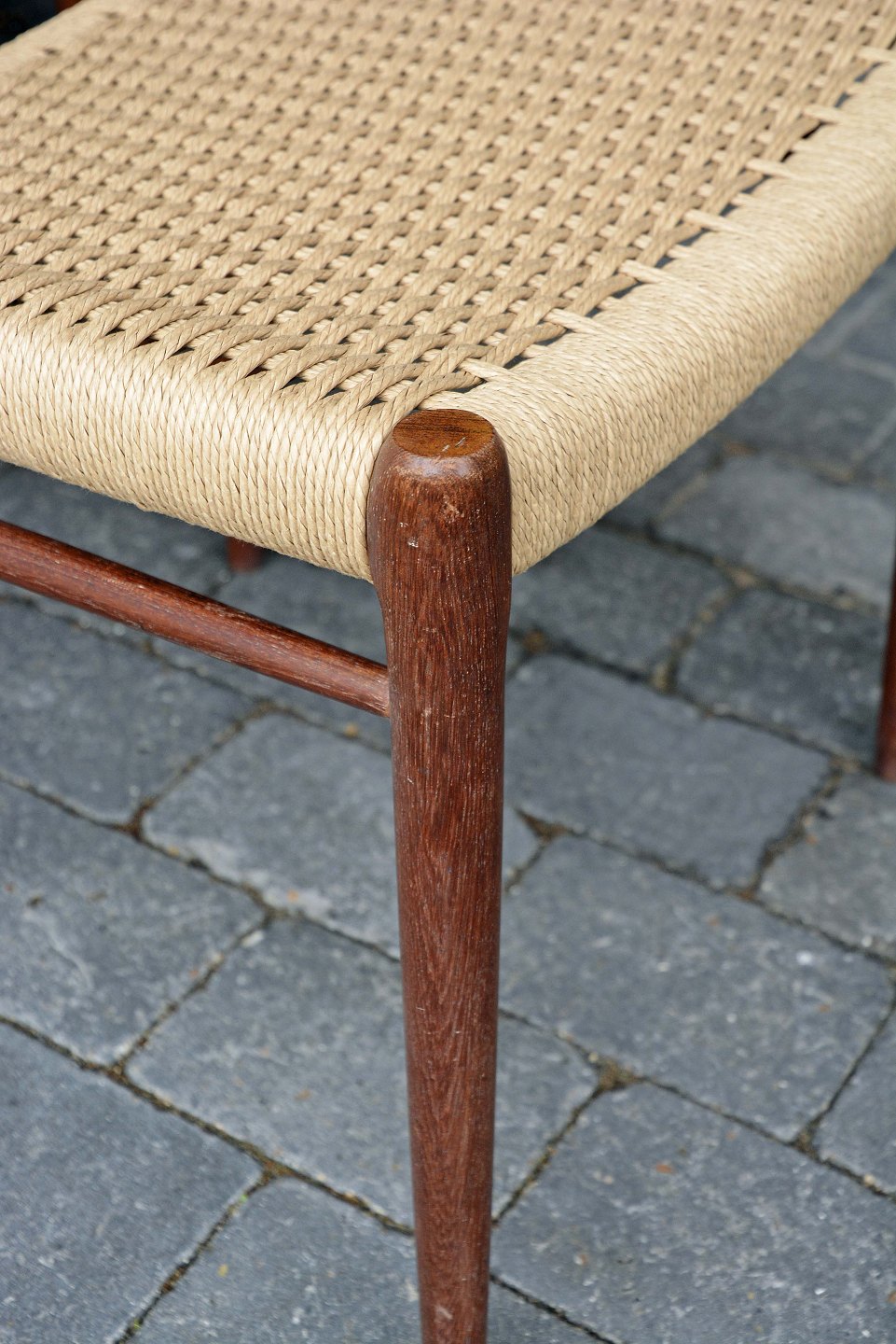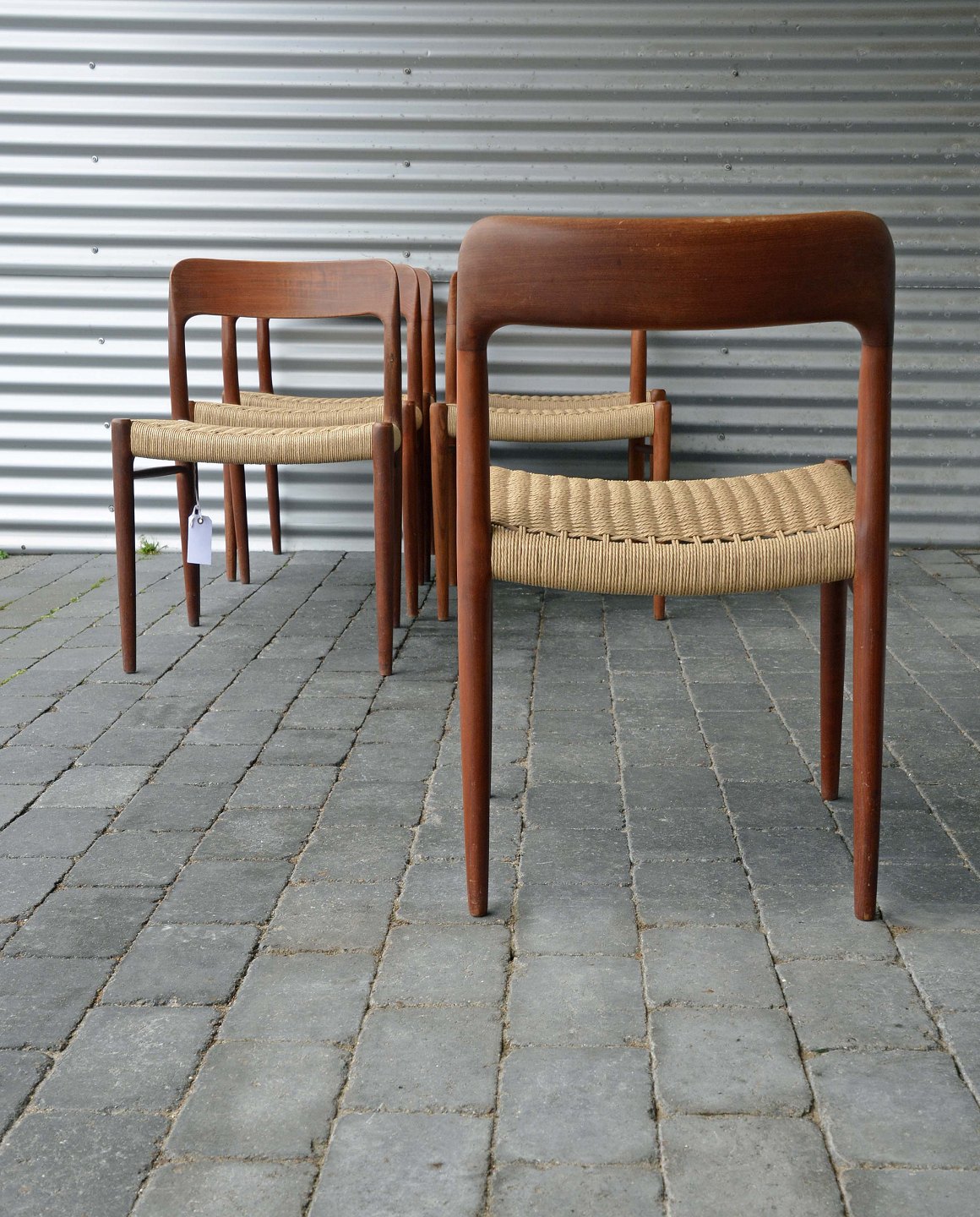 Spisebordsstole, model 75 i teaktræ med ny flettet sæder