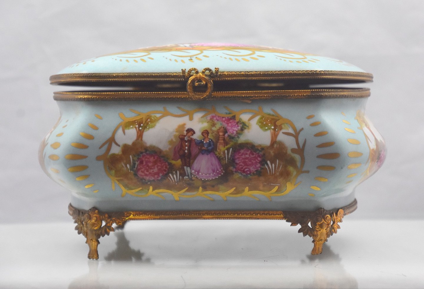 Porcelænsskrin formentlig engelsk kopi udført af Coalport 1820-1850 af de Franske Sevres porcelæn.