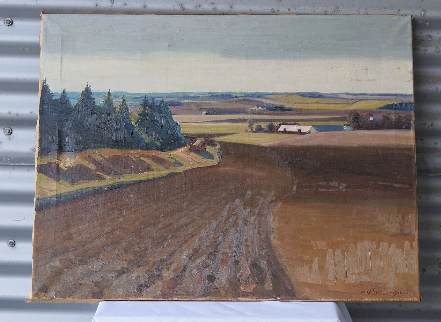 Maleri, olie på lærred. Landskabsmotiv, marklandskab.