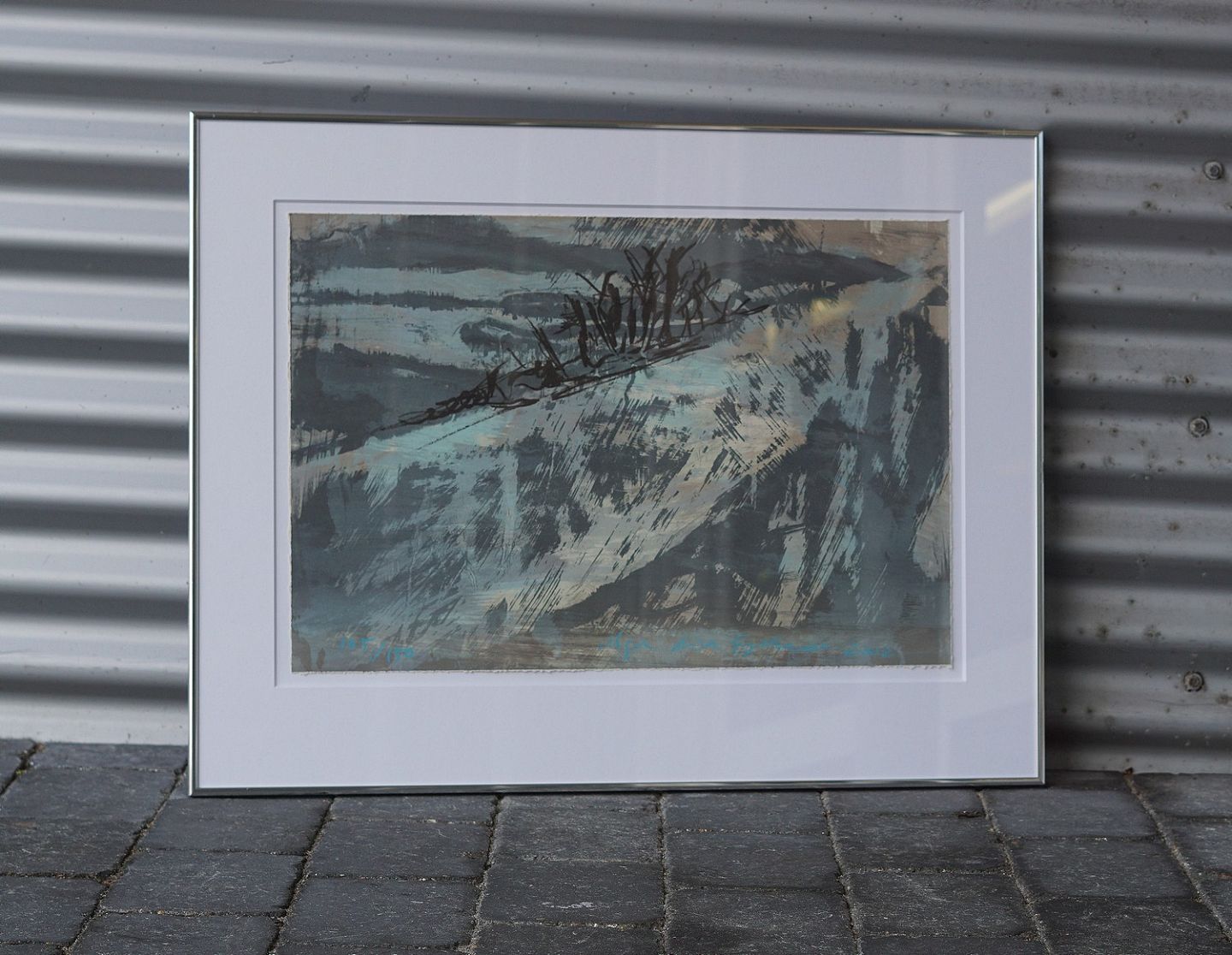 Knud Erik Færgemann litografi landsby 61,5 cm