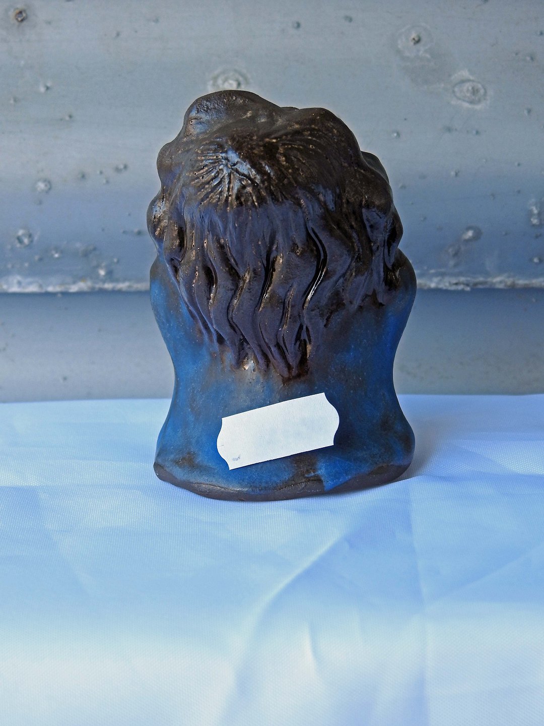 Dam trold i keramik med motiv af Troldepige med blå kappe