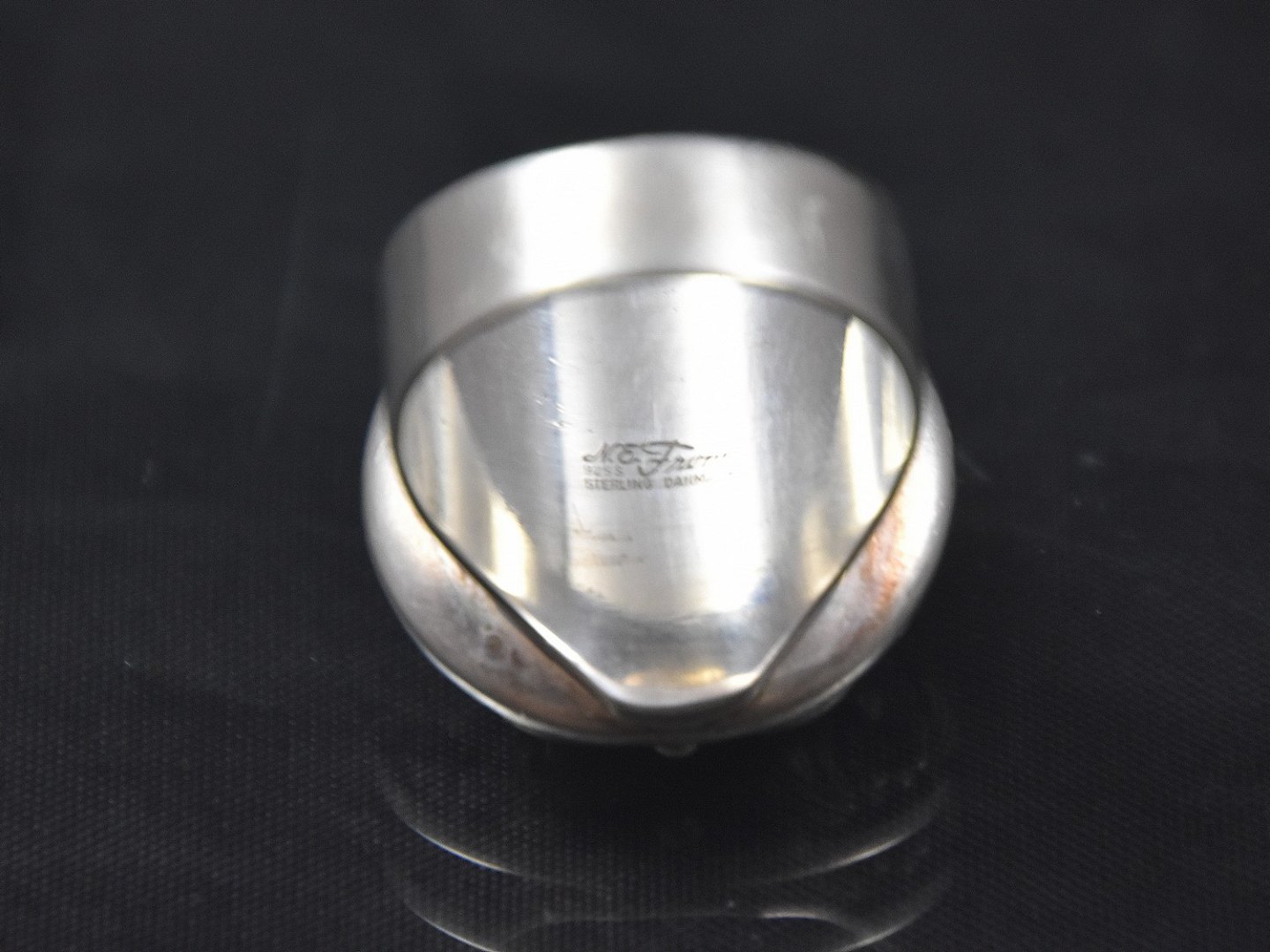 Sølvring (925s) med ravsten, dekoreret med en krans af blomster