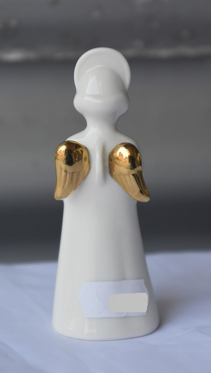 Figur i porcelæn med motiv af engel med horn. Nr. 1 af 12