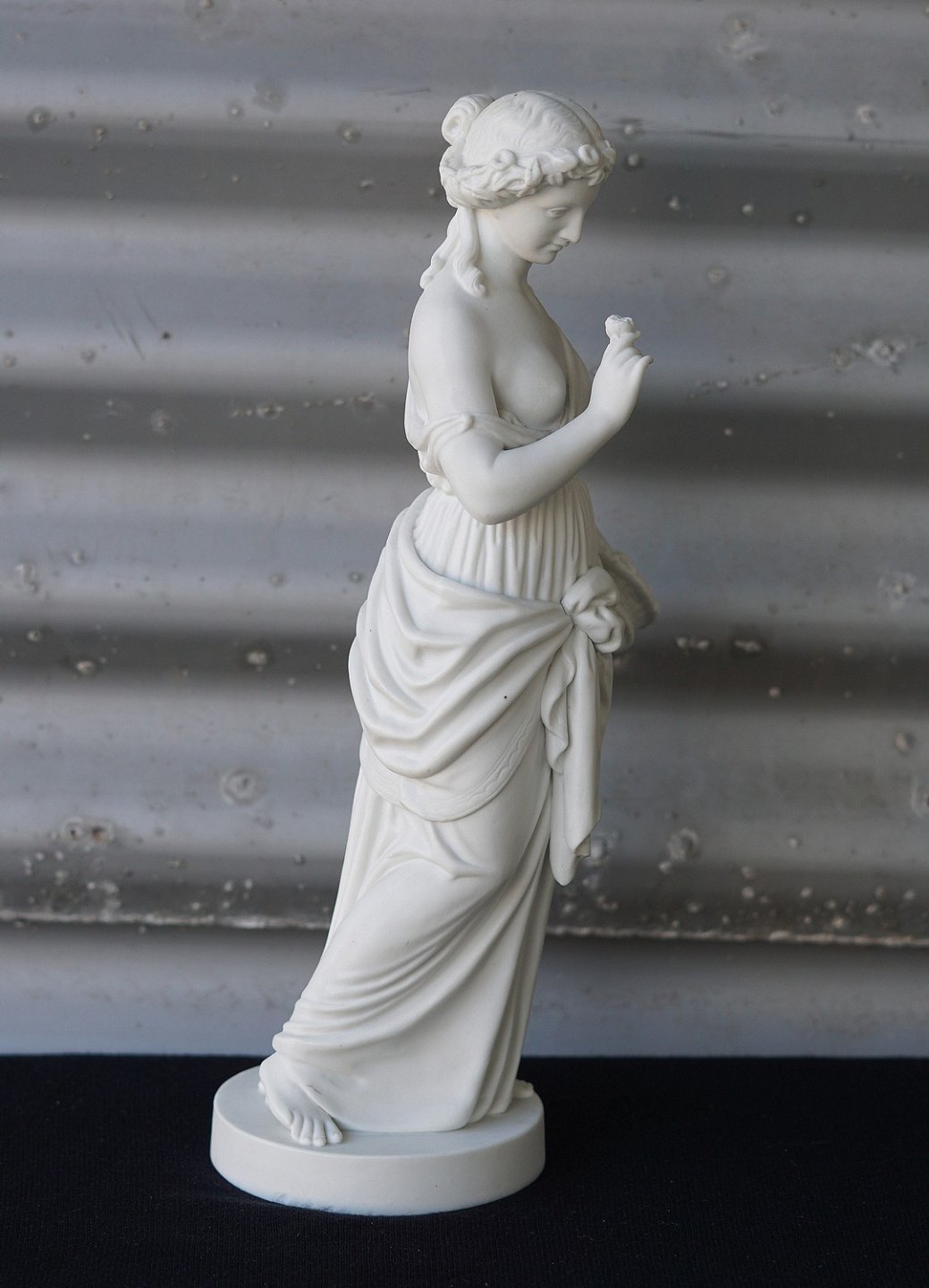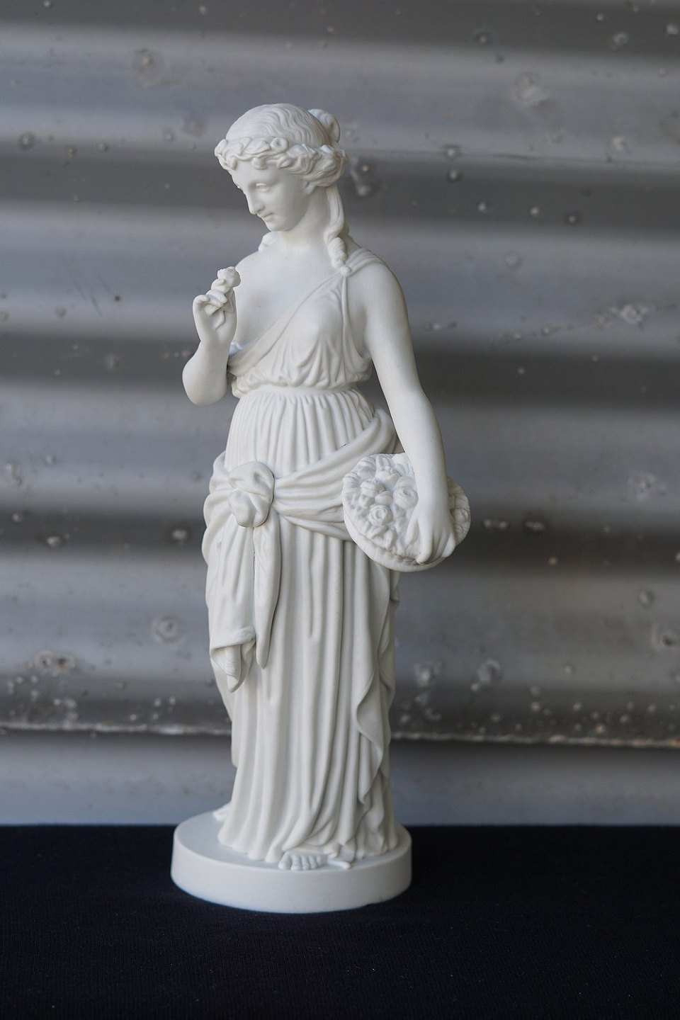 Figuren er lavet efter Thorvaldsen figuren blomsterpige år ca 1880