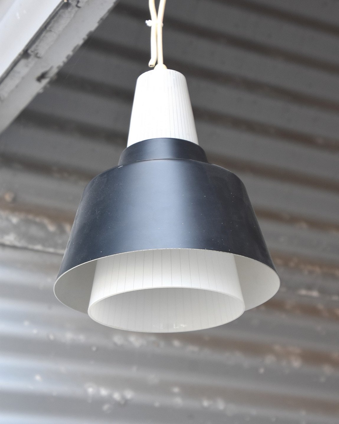 Sort/ hvid pendel, lavet i metal (sort) og opal glas