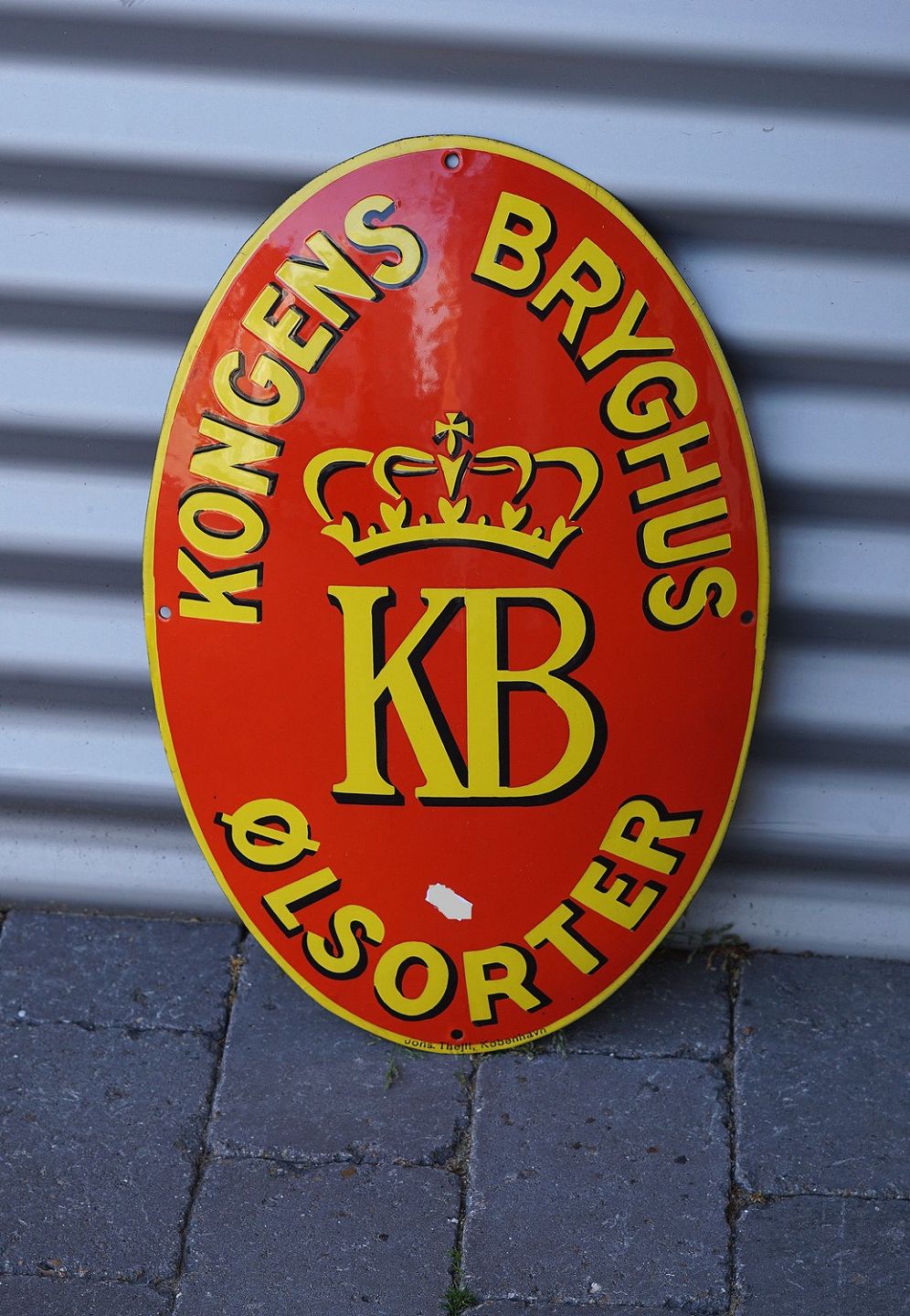 Emaljeskilt, med reklame for Kongens Bryghus - KB.