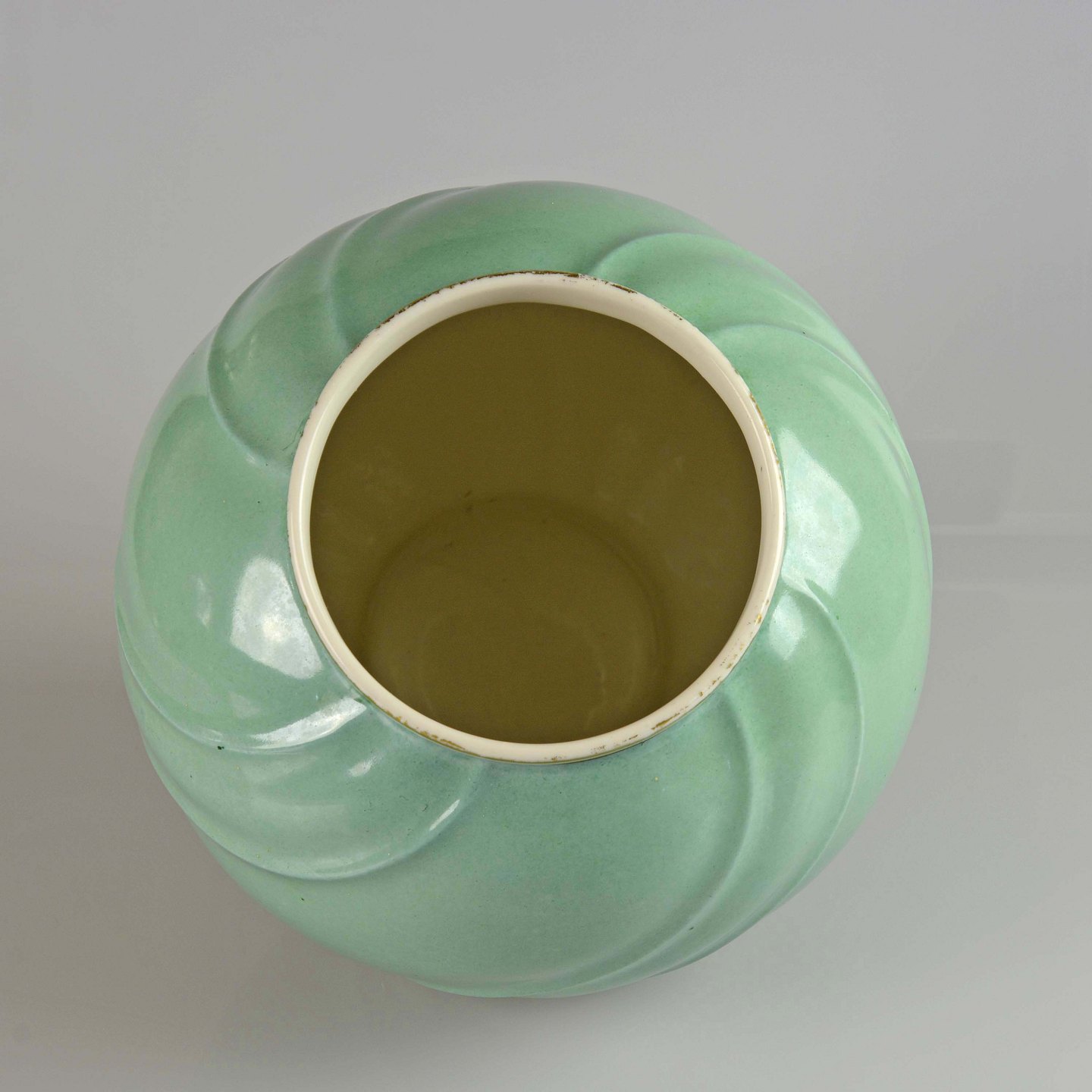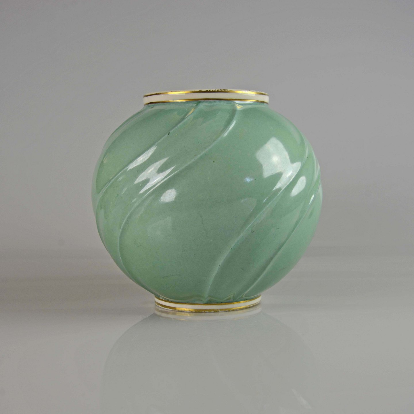Sjælden rund svejfet vase i mintgrøn farve med gyldne kanter