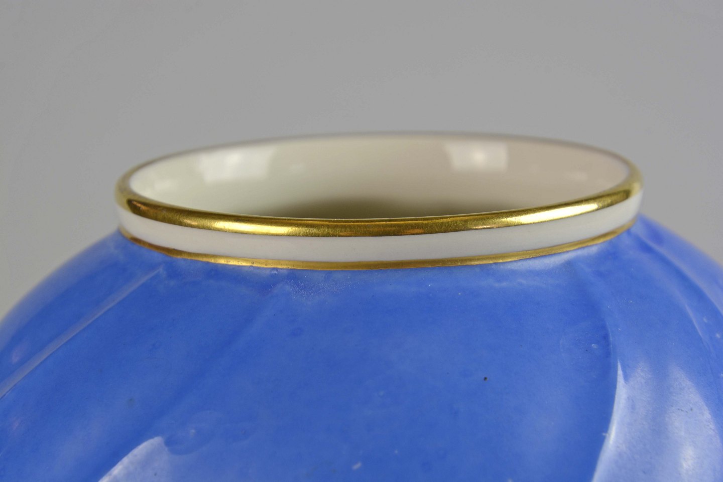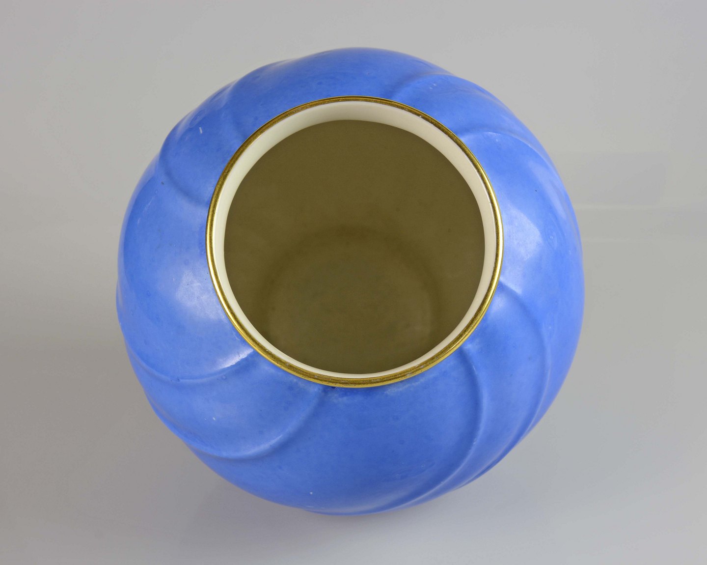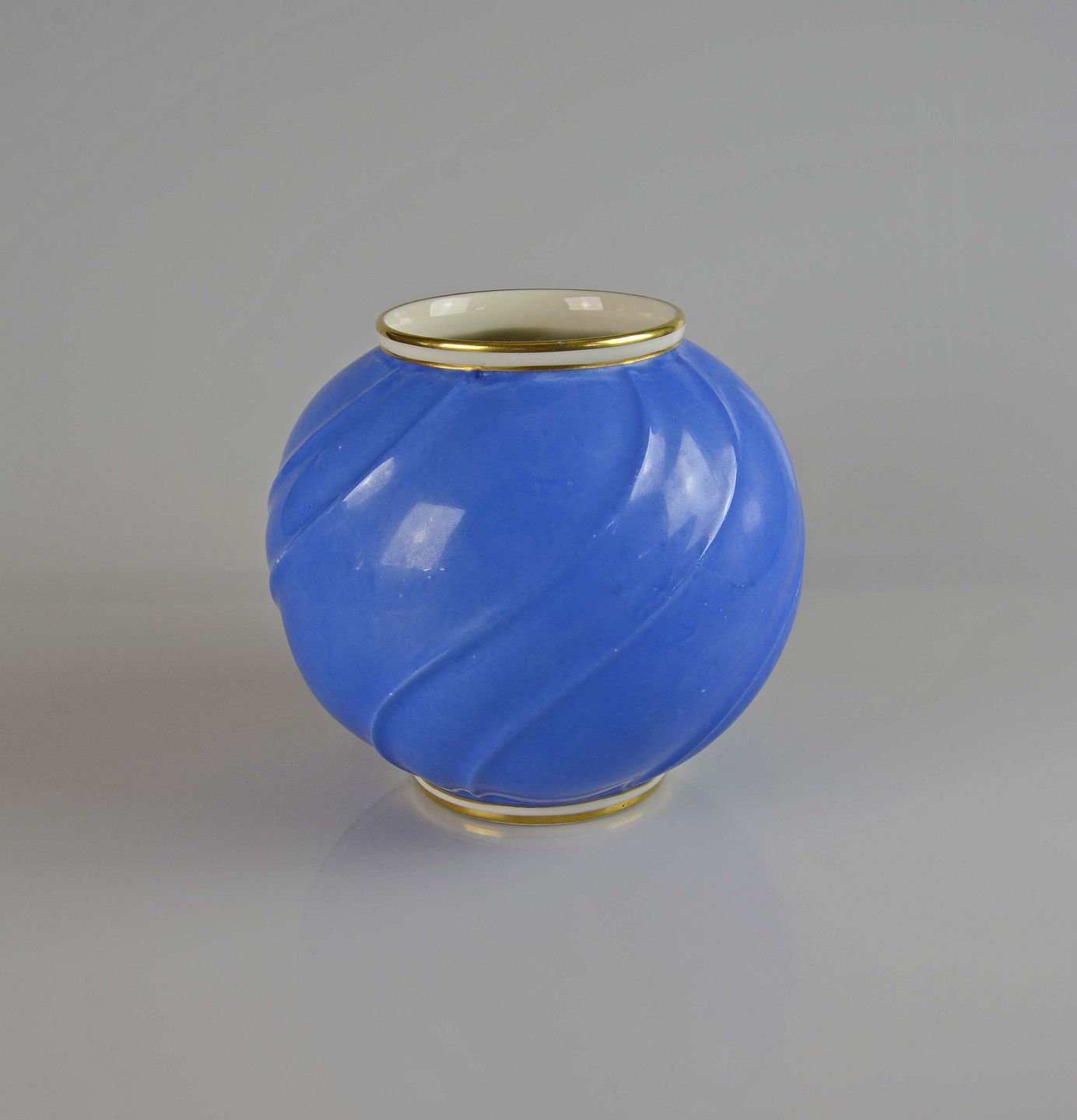 Sjælden rund svejfet vase i koboltblå farve med gyldne kanter