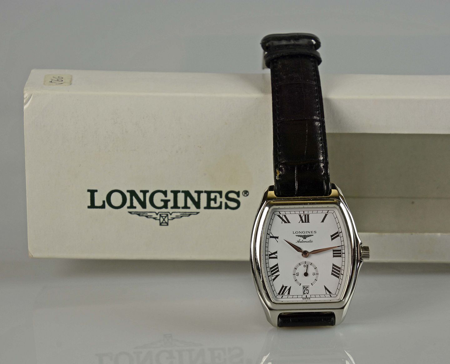 Armbåndsur med sort læderrem i original emballage fra Longines