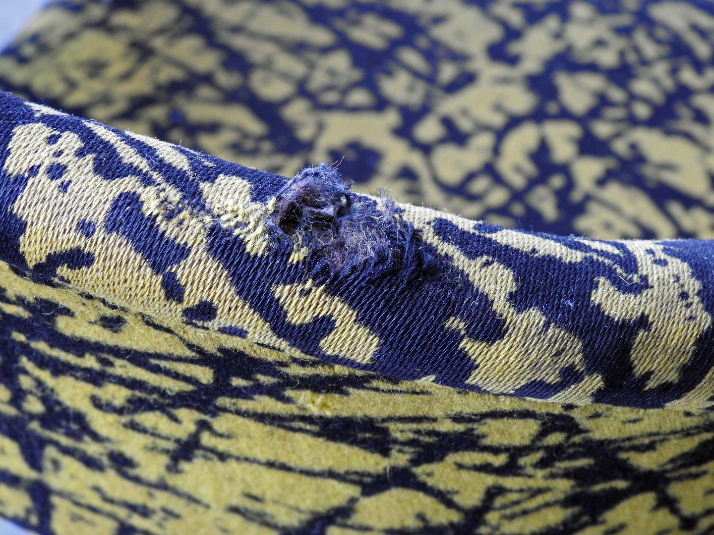 Brugsspor på stel samt hul i polstringen ved ryglæn