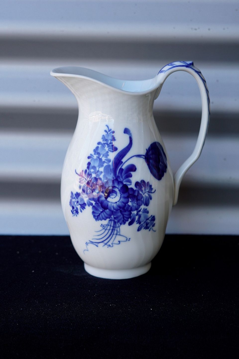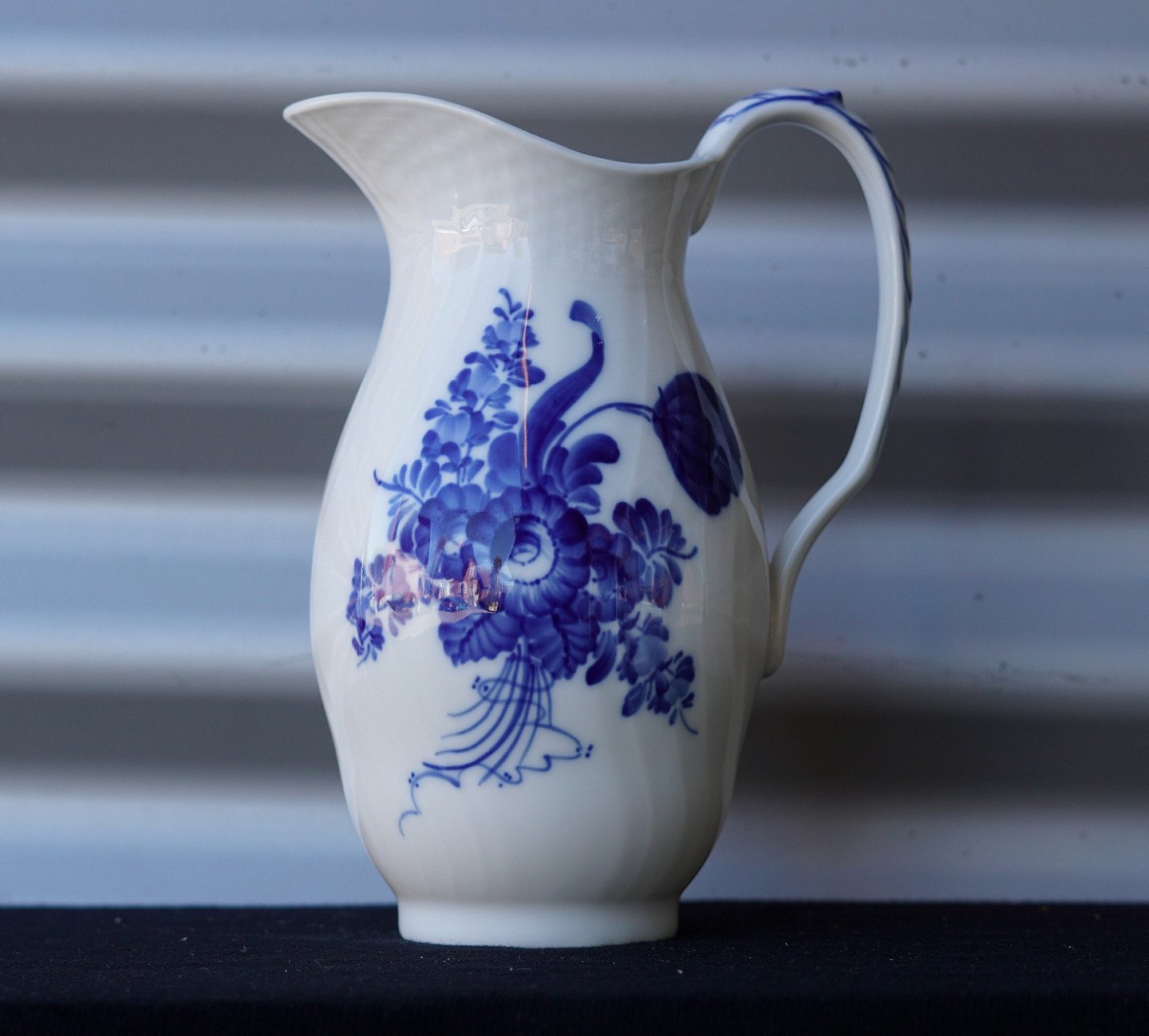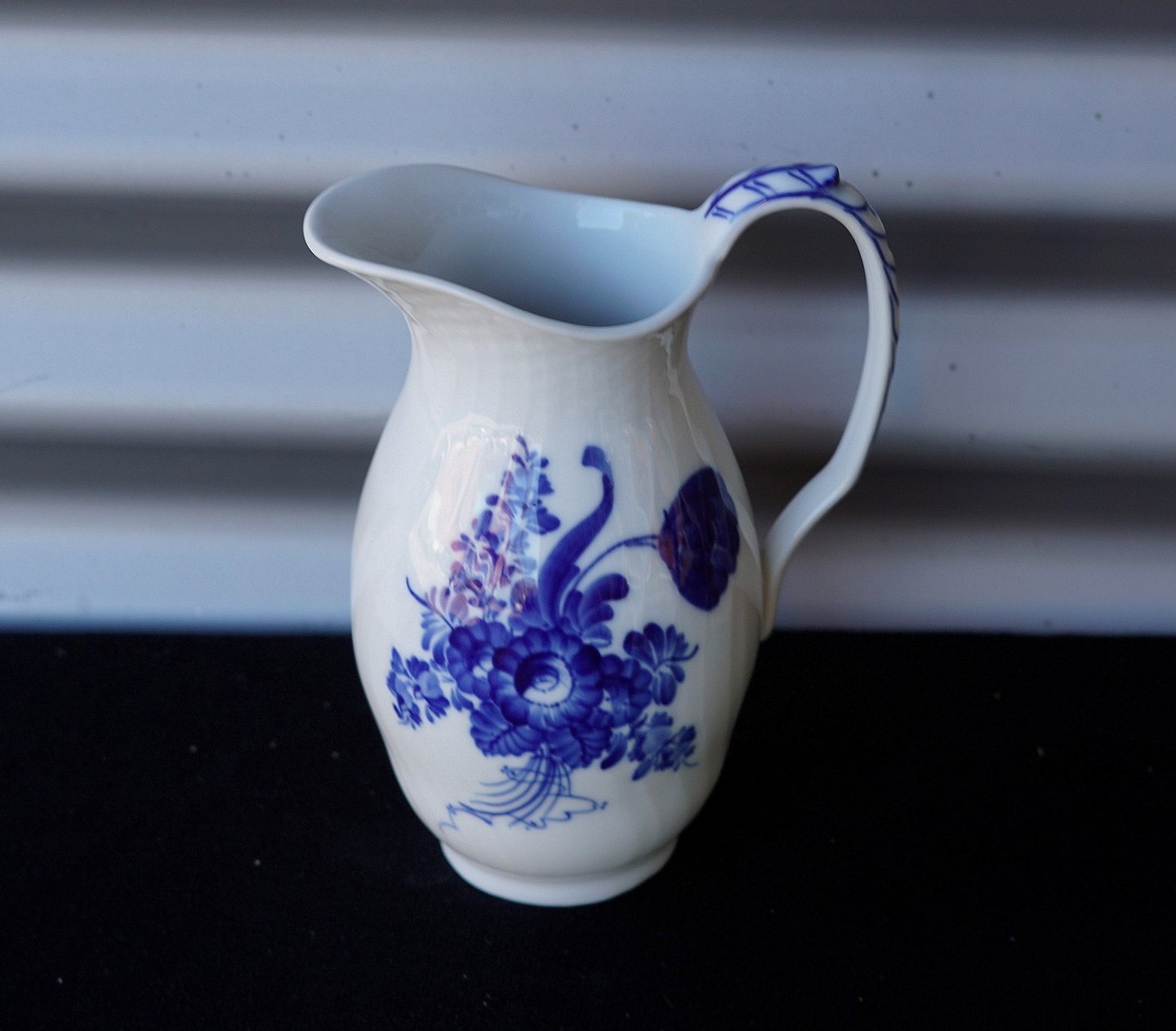 Kongelig Blå blomst mælke-/vandkande (10/1609). Kanden er svejfet