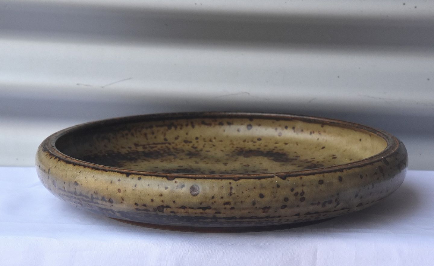 Unika brunligt stentøjsfad (8042) af Carl Halier