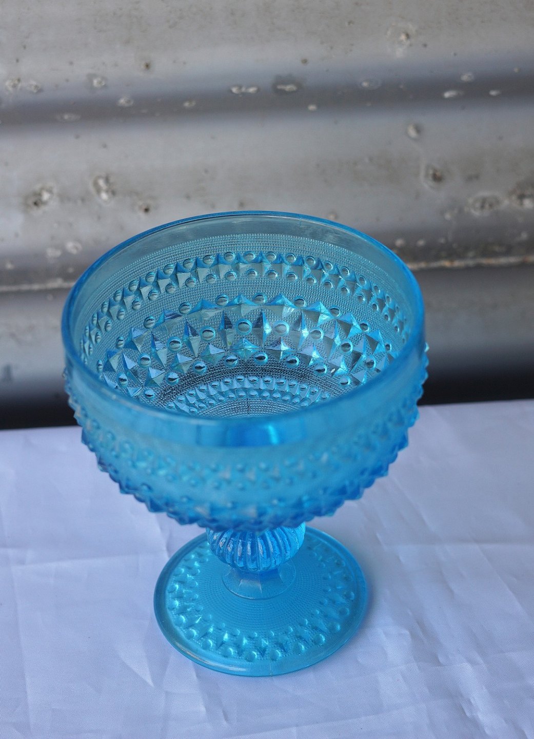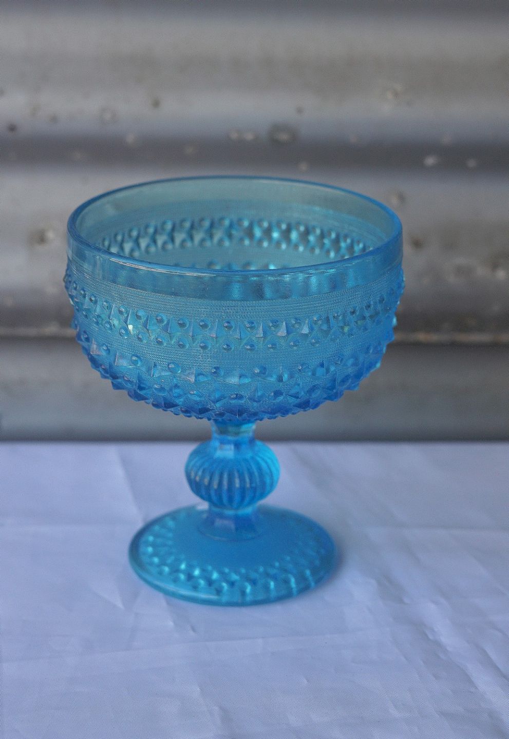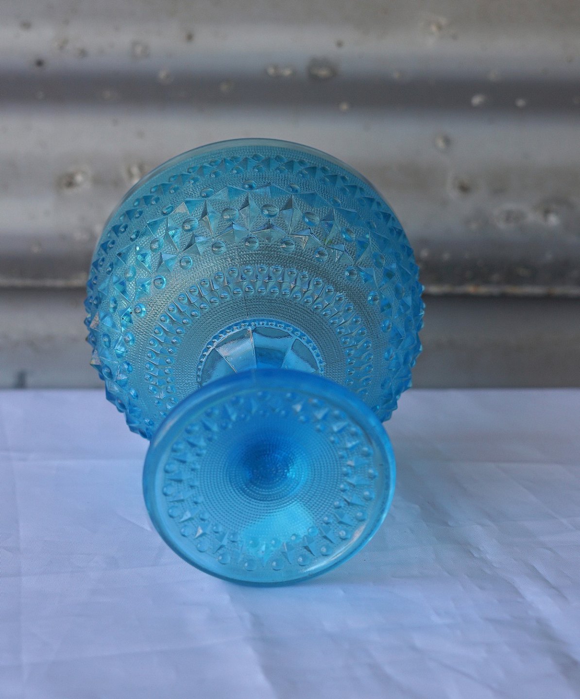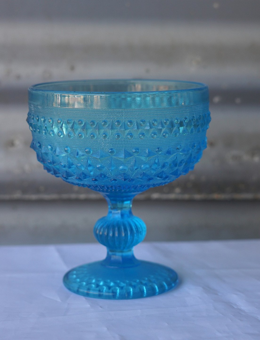Søblå opsats i presset glas