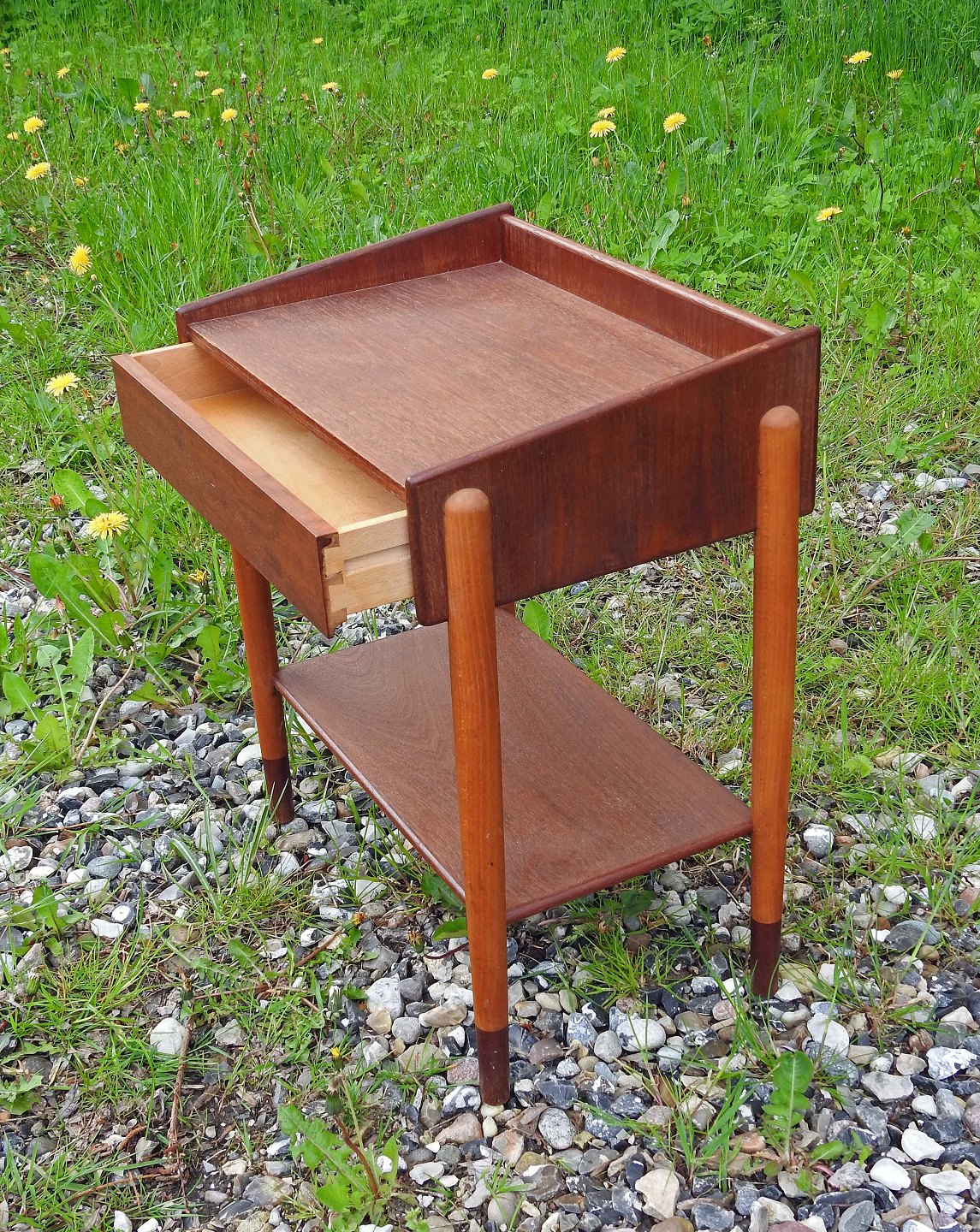Natbord i teaktræ og egetræ med skuffe og hylde