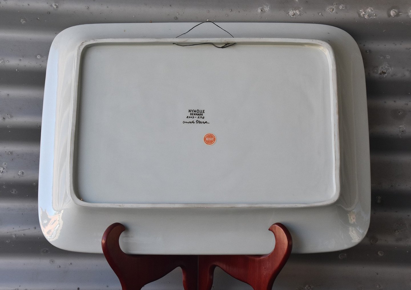 Rektangulært fad med fasan (2003-298), med brun dekor.