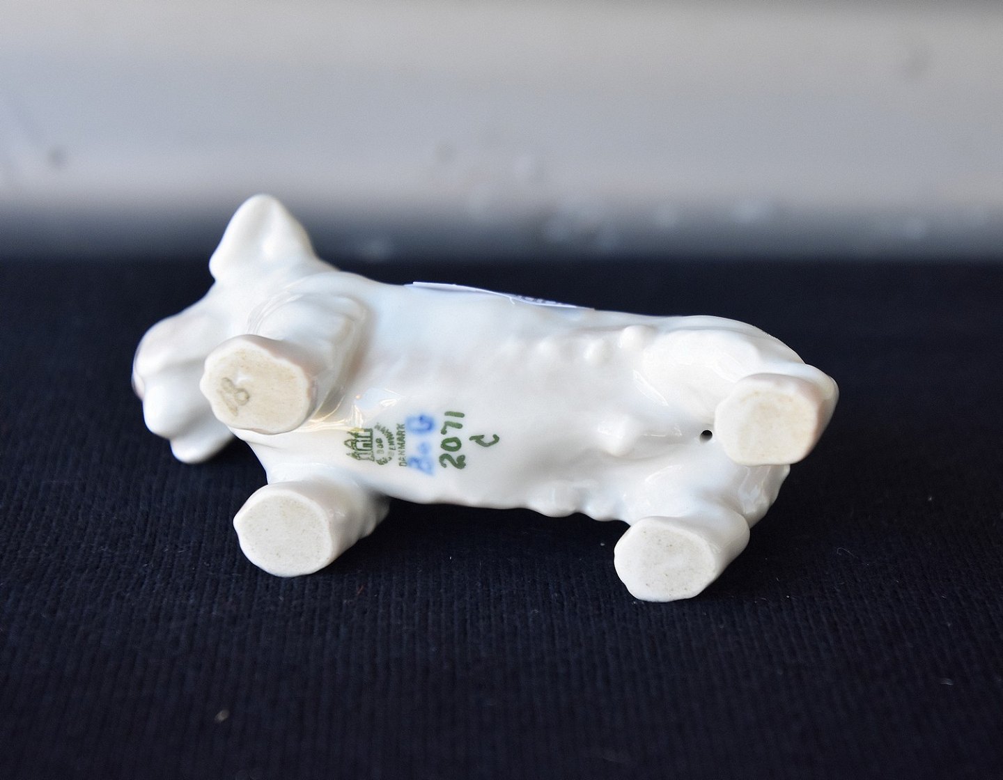 Sealyham Terrier nr. 2071. Af fabriksmærket ses det, at Sealyham Terrier er produceret mellem 1952 og 1958