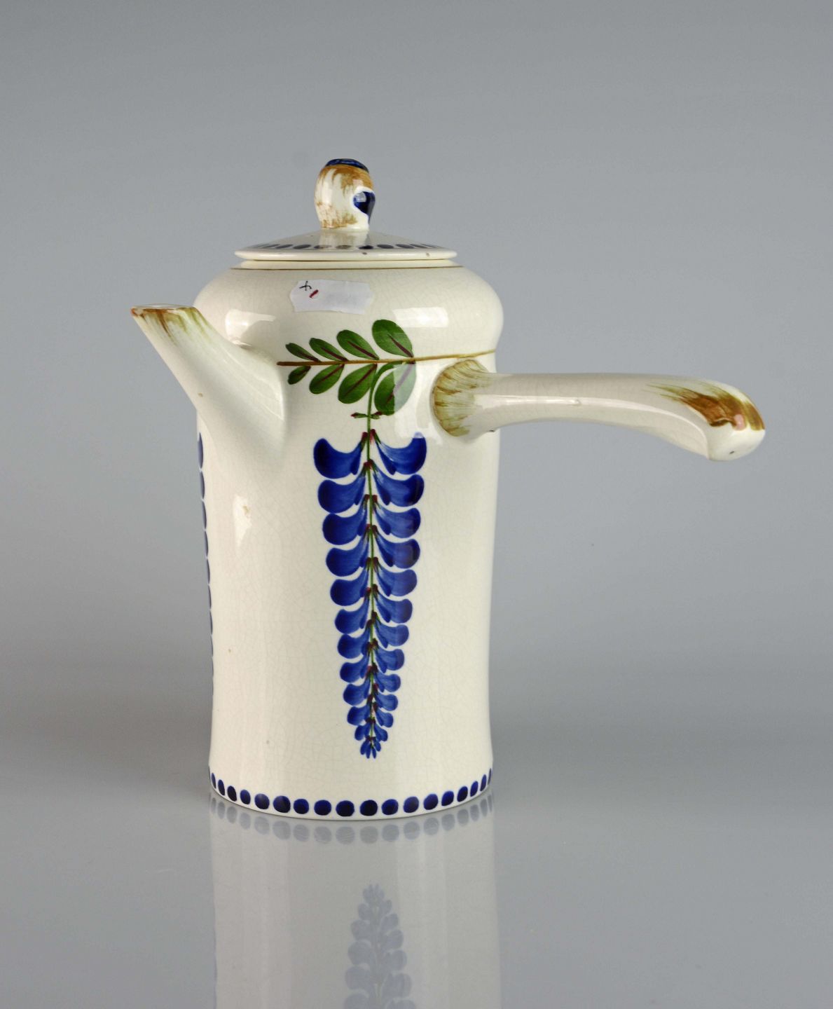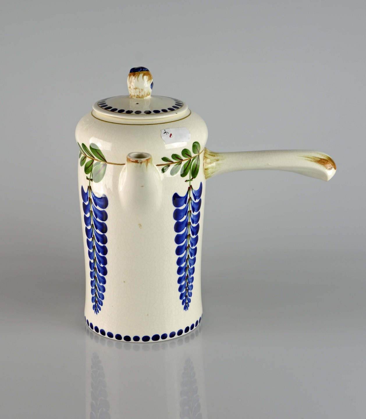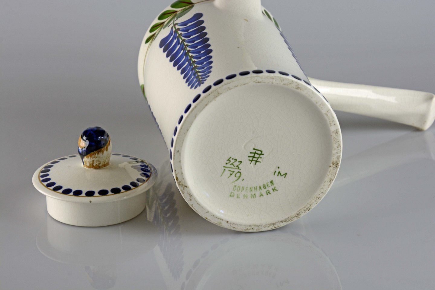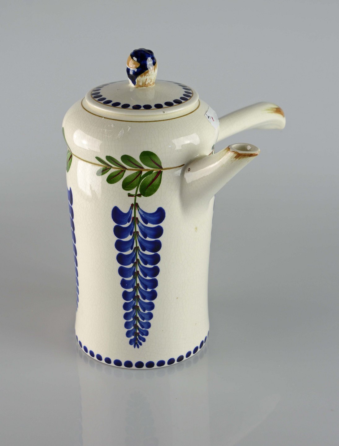 Blåregn kaffekande med lige hank i fajance fra Aluminia nr. 522/179