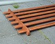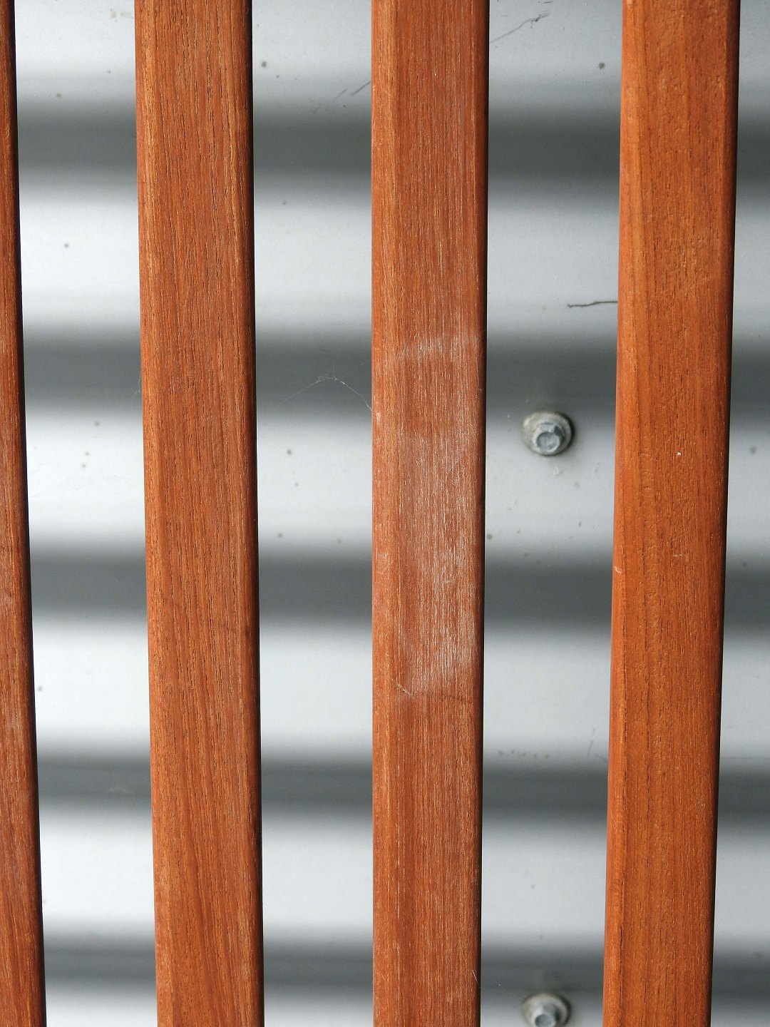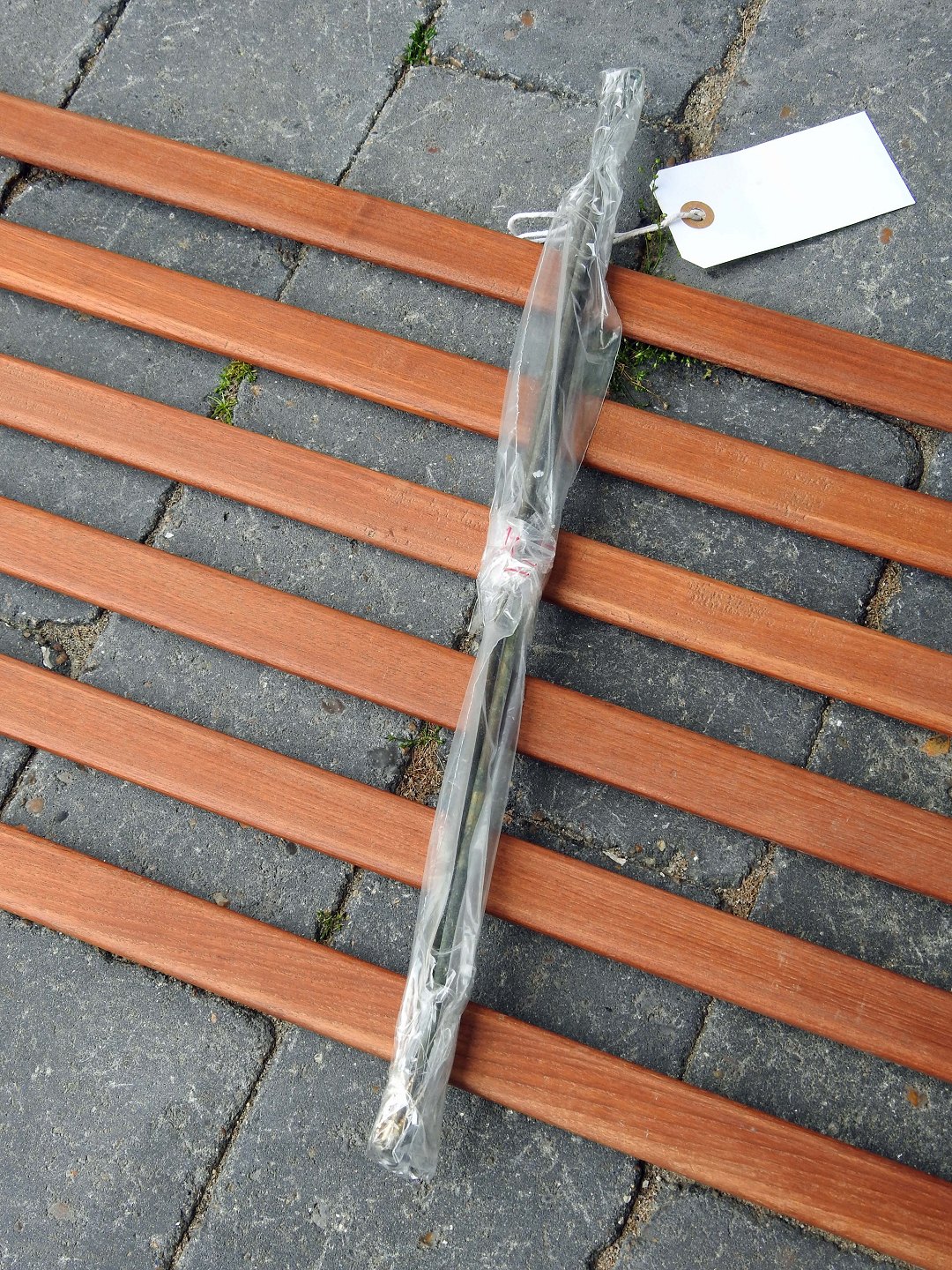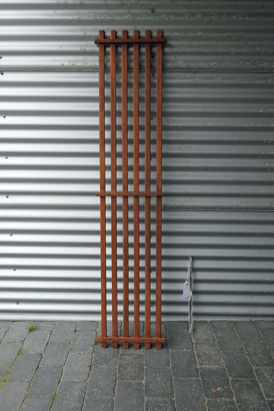 Hattehylde i teaktræ med tilhørende ophæng i metal