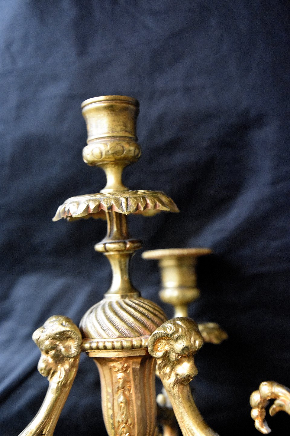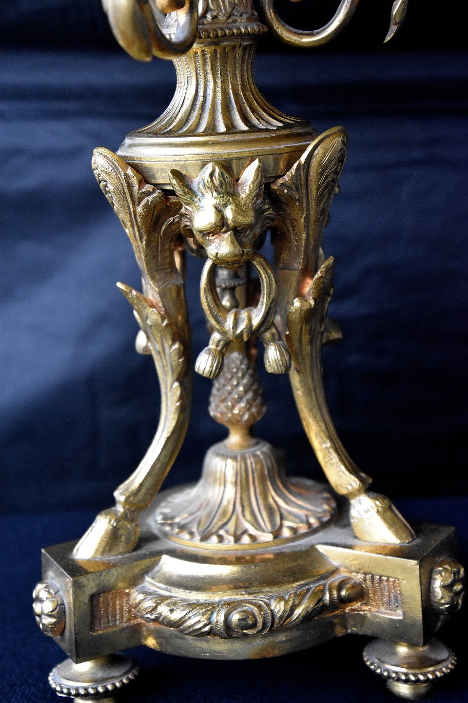 Antik, 5-armet, kandelaber, lysestage, patina, fransk