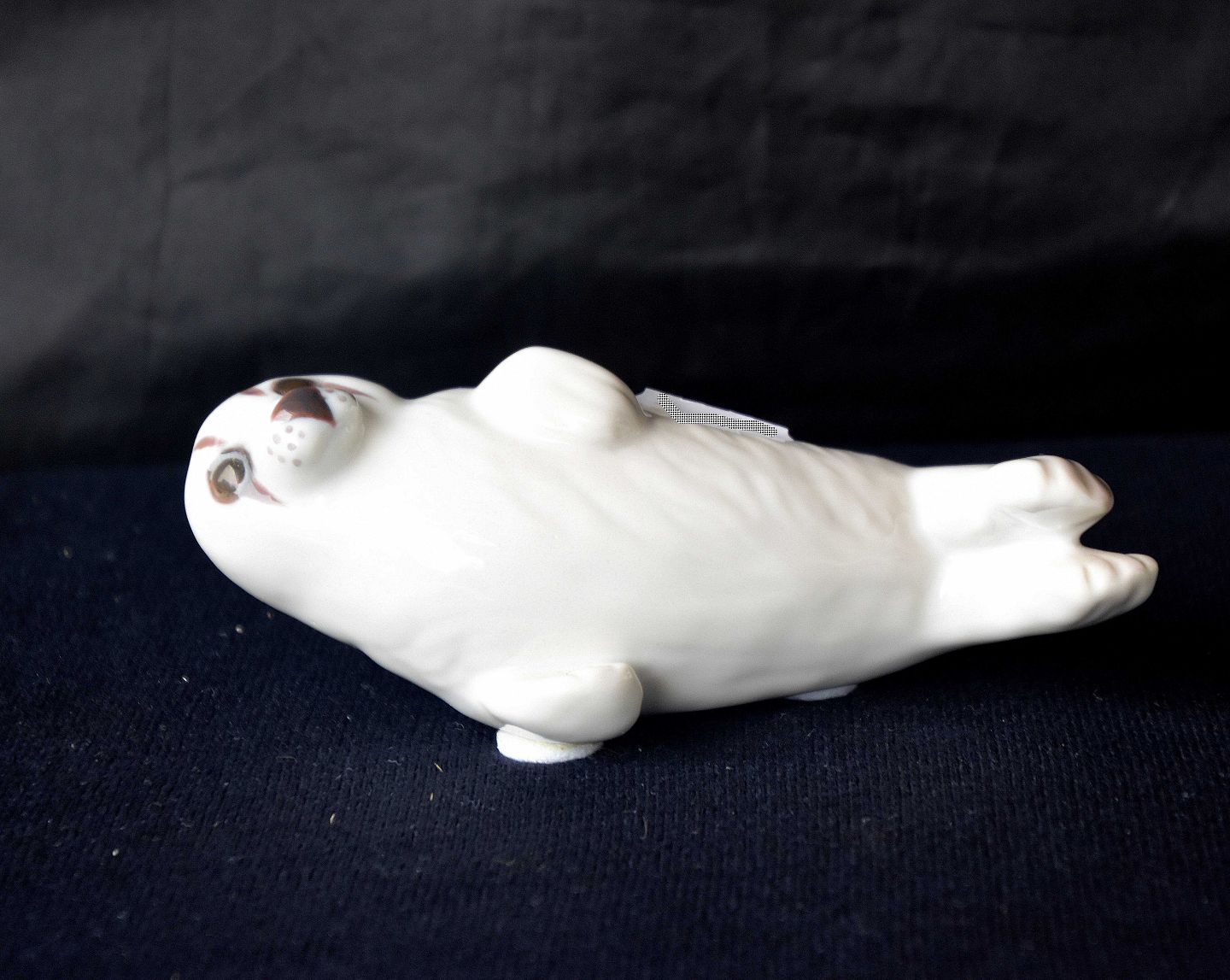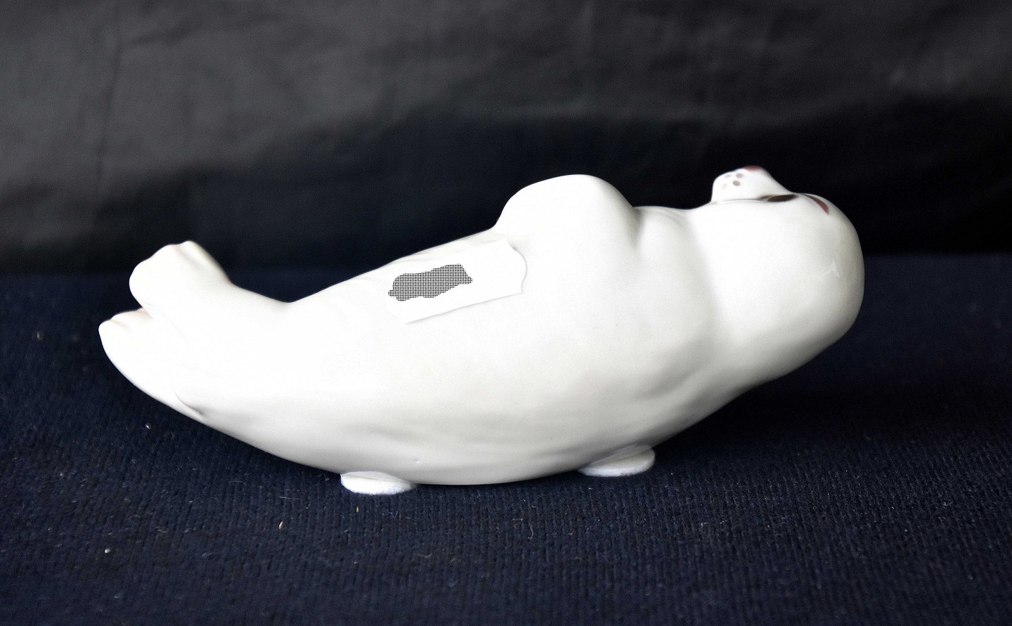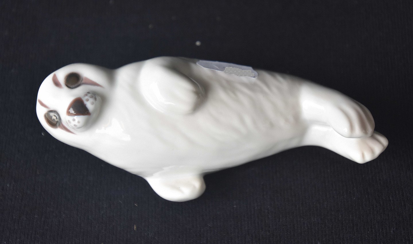 Figur i porcelæn med motiv af liggende hvid sæl. Nr. 2412
