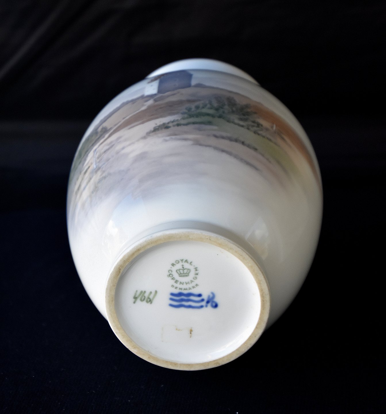 Royal Copenhagen vase, 4661, dekoration af Den tilsandet Kirke i Skagen. Sct. Laurentius Kirke fra slutningen af 1930èrne