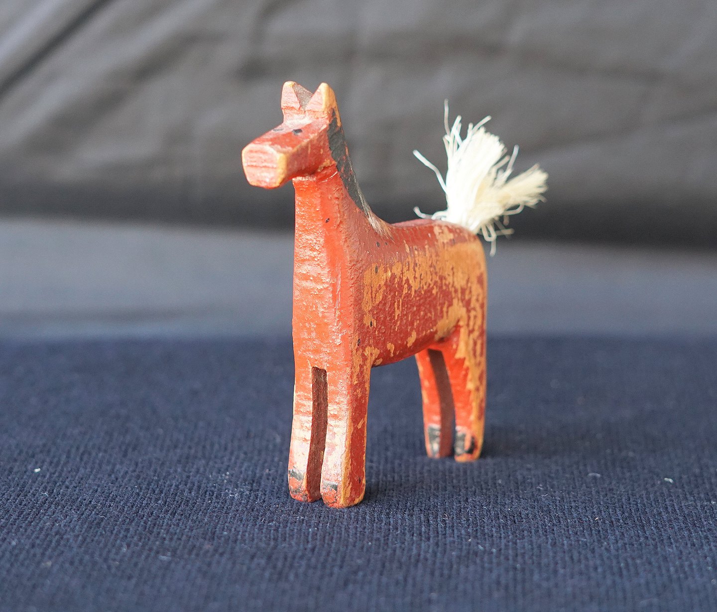 Rødbrunfængsels træhest, hesten har en lys hale, der er malet en sort manke på hesten