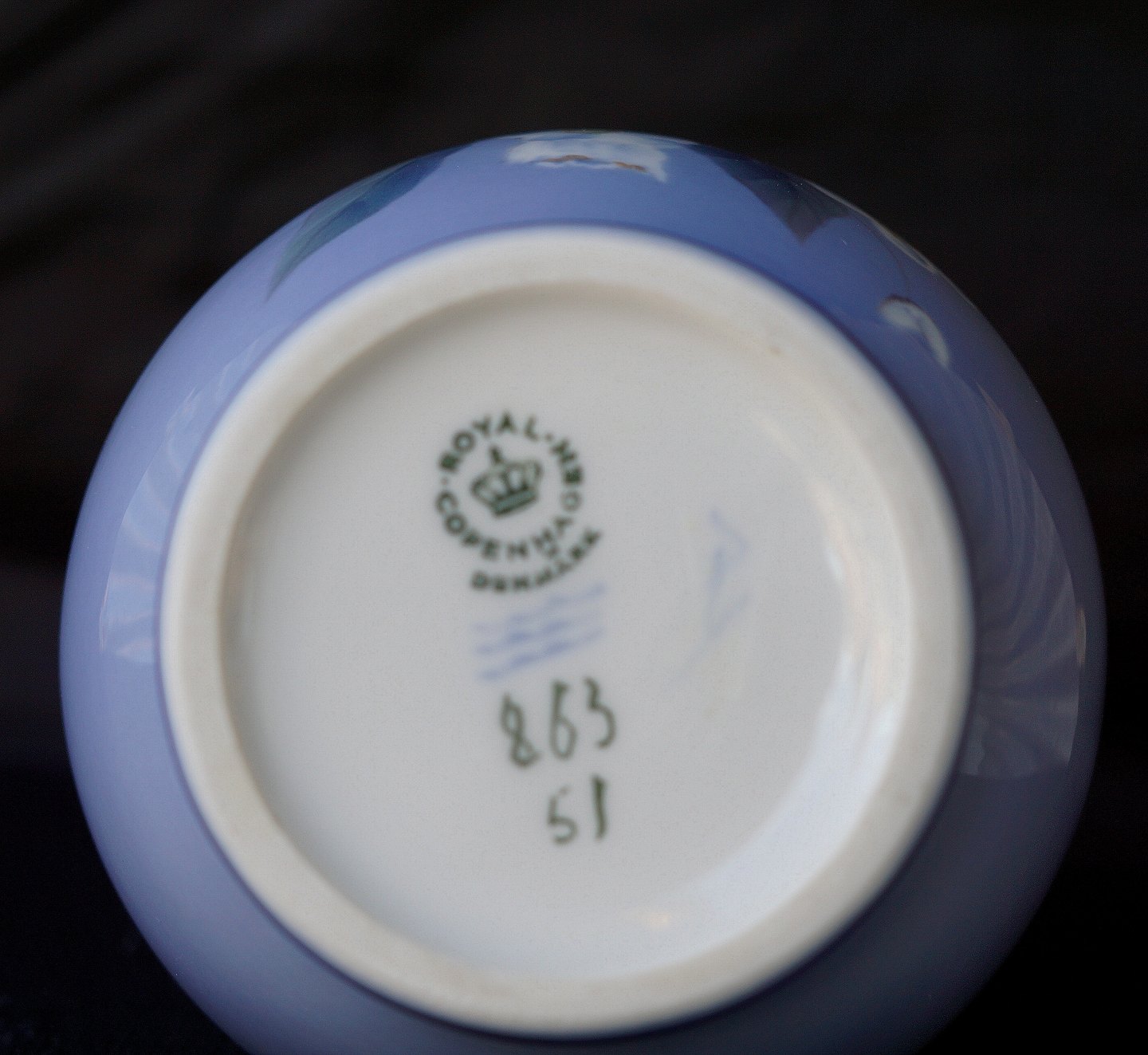 Royal Copenhagen, vase 863/51. Motiv på vase blomstergren med hvide blomster