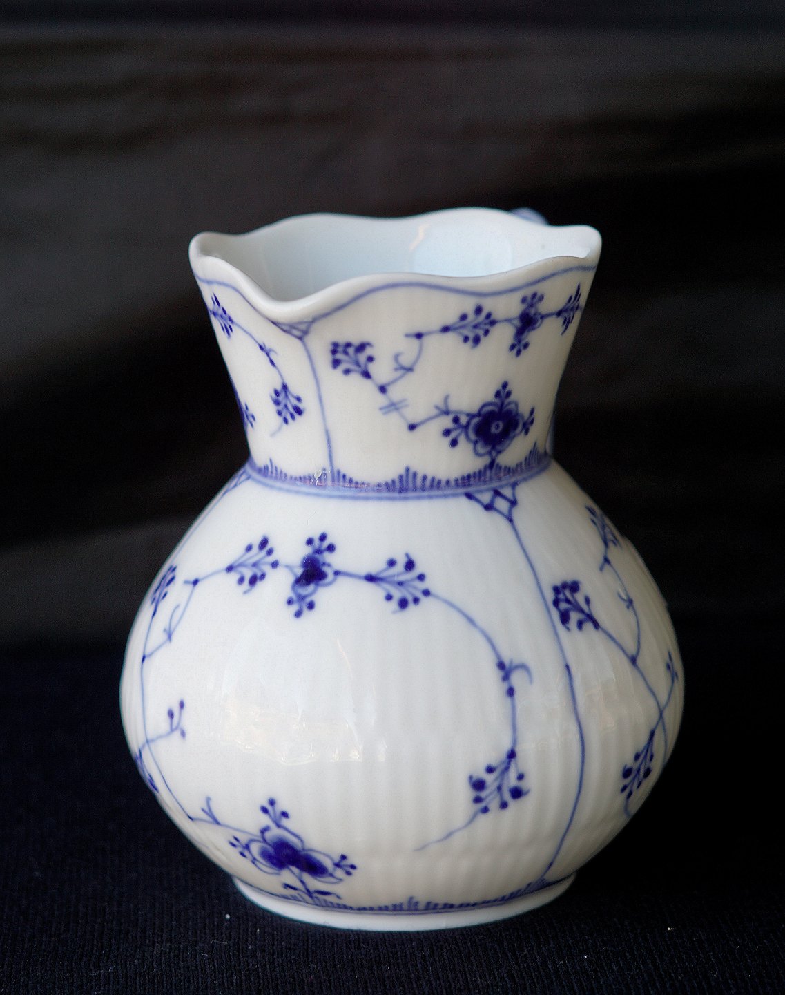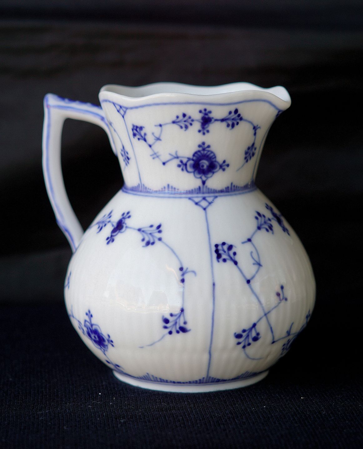 Royal Copenhagen, RC, Den Kongelige Porcelænsfabrik, KGL., kande, musselmalet, riflet, porcelæn