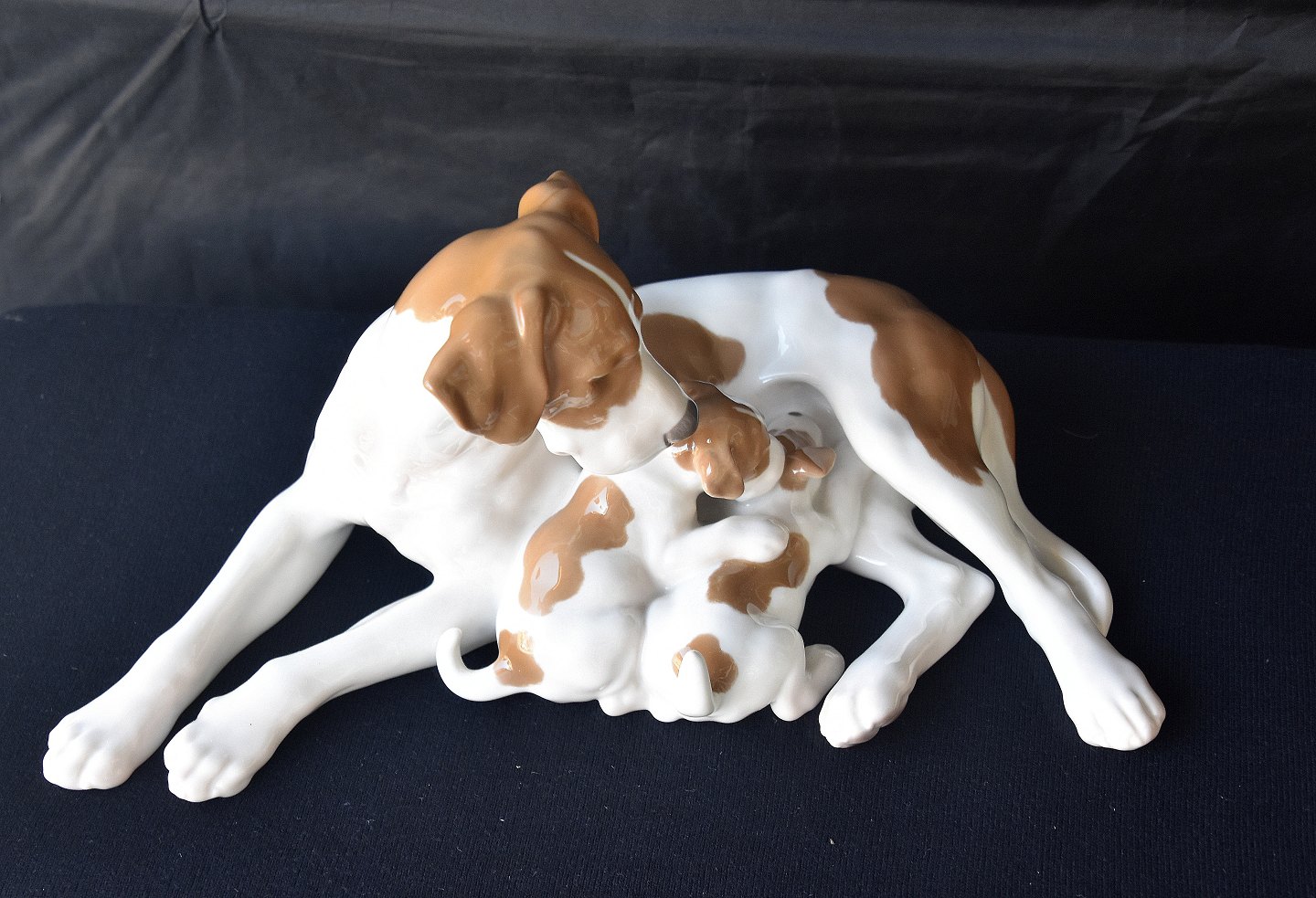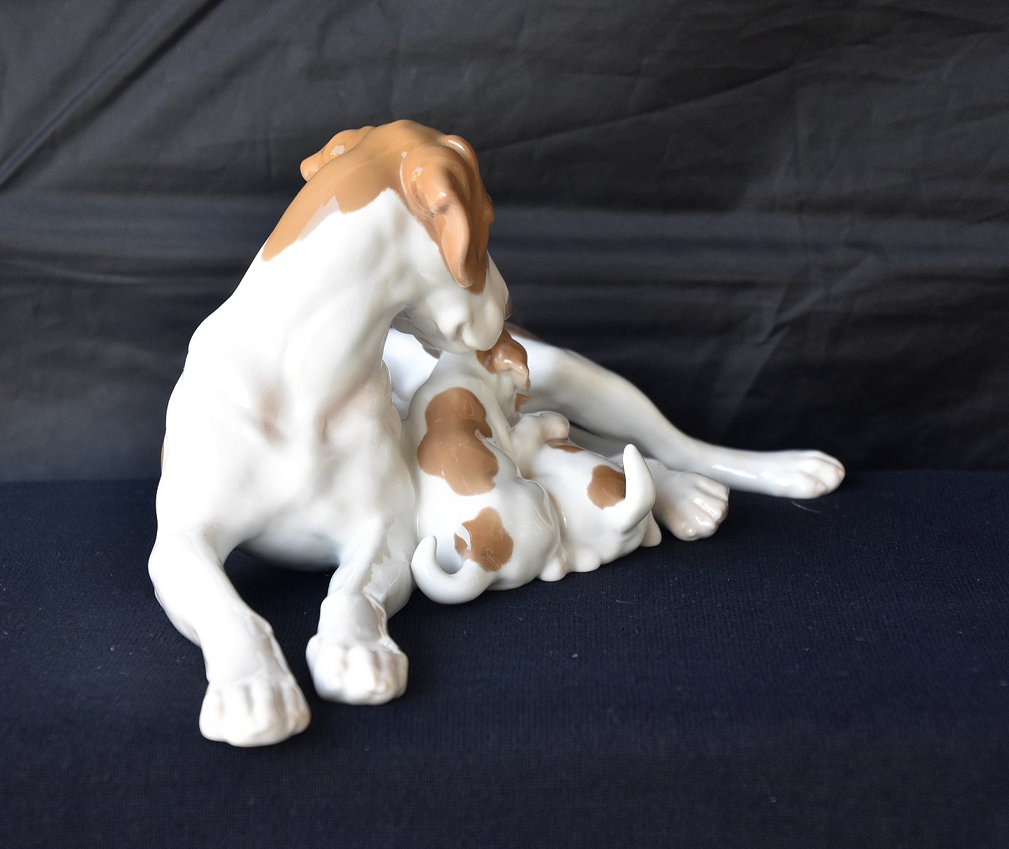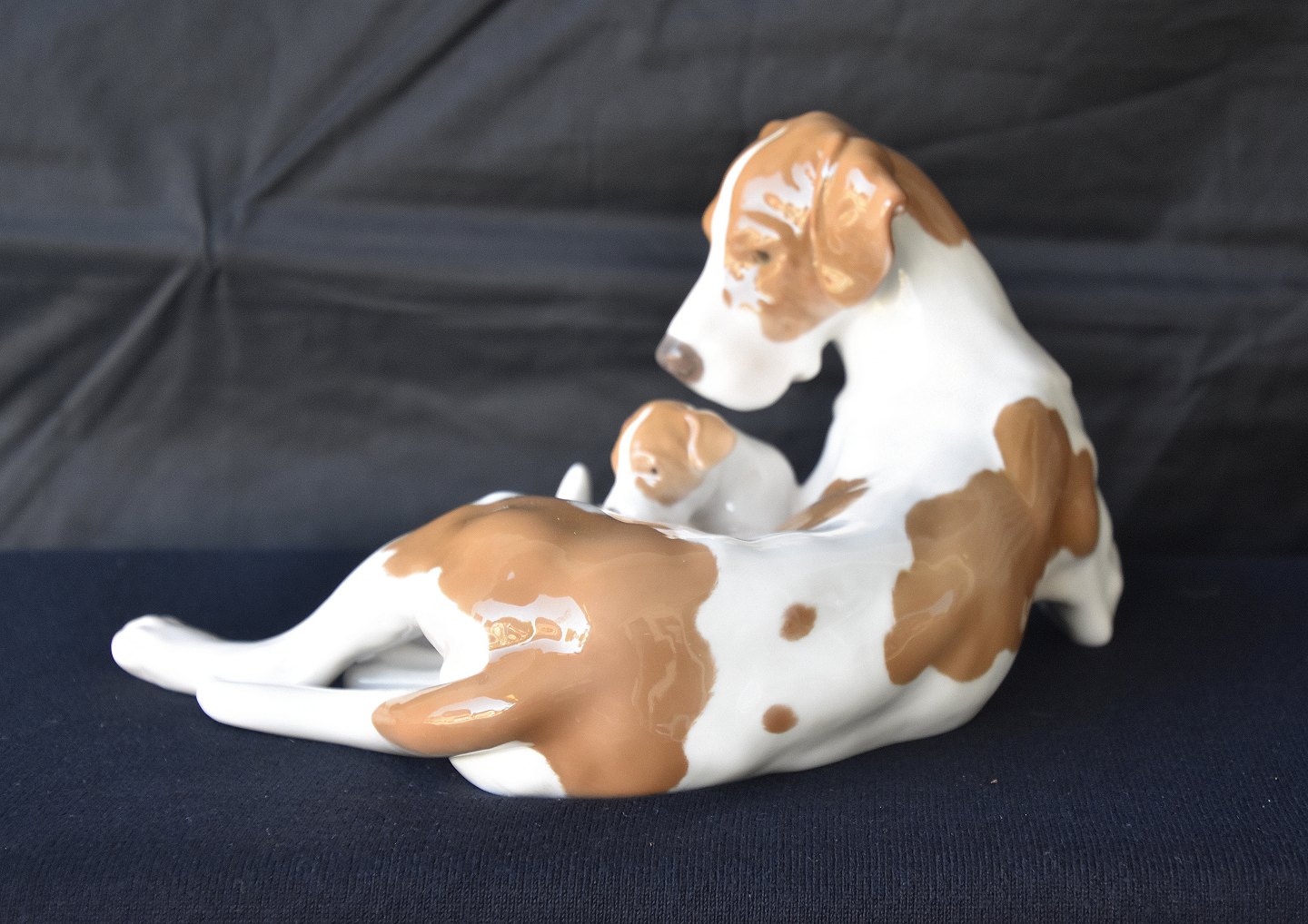 Figur i porcelæn med motiv af Pointer med hvalpe. Nr. 2111