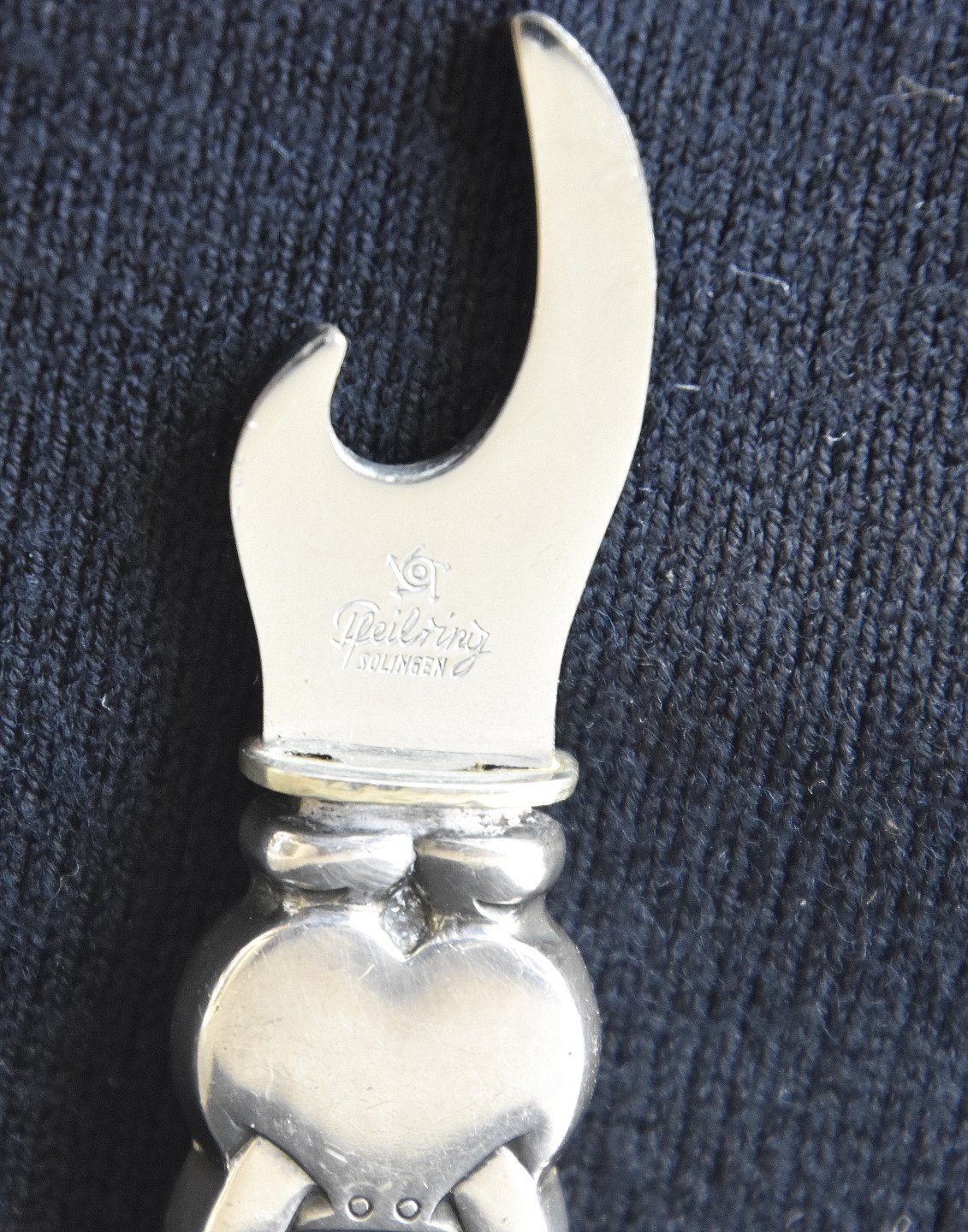 Pfeibring Solingen, PF, oplukker, stål, sølv, indskrift, håndtag